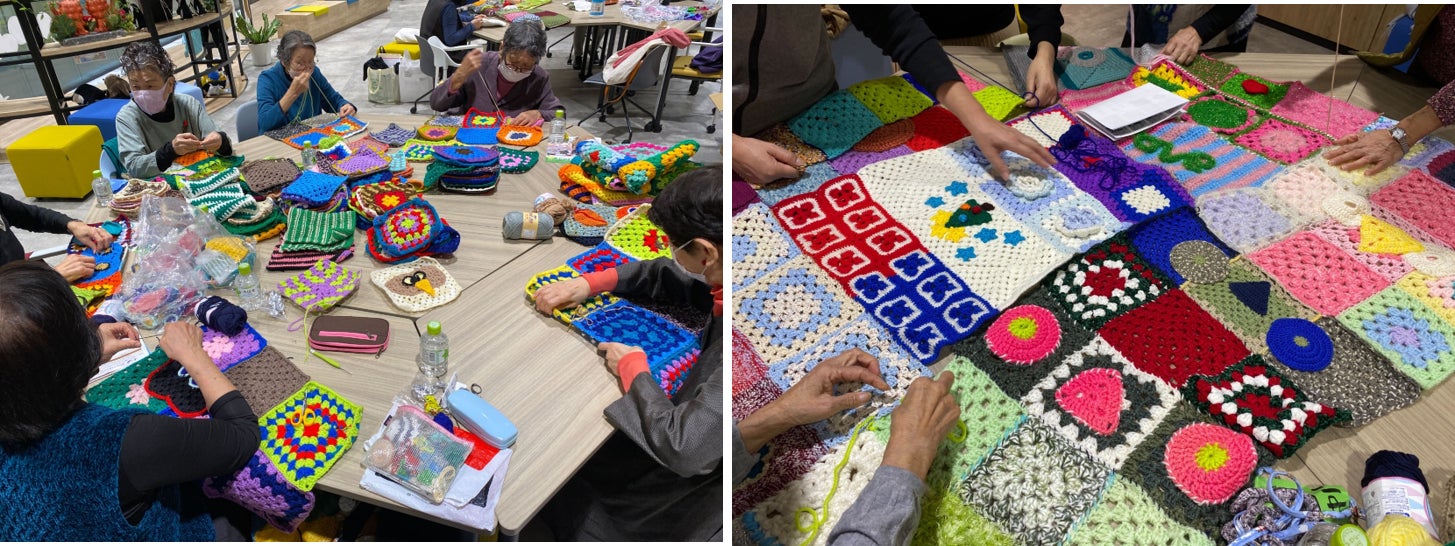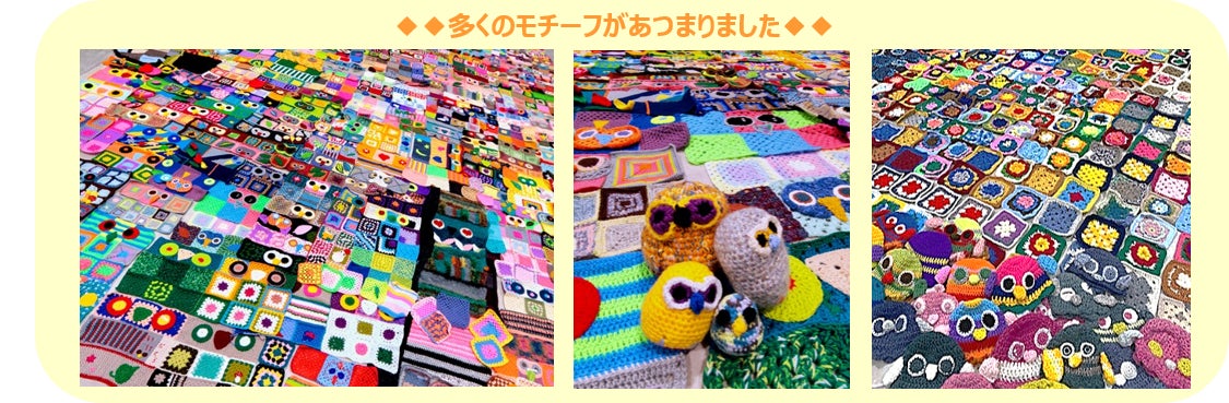 | ■ワークショップ参加者の声 ・編み物ができなくてもつなぎ合わせは簡単にできた ・自分がつなげたモチーフを探しにいきたい ・講師や参加者とのおしゃべりが楽しかった |