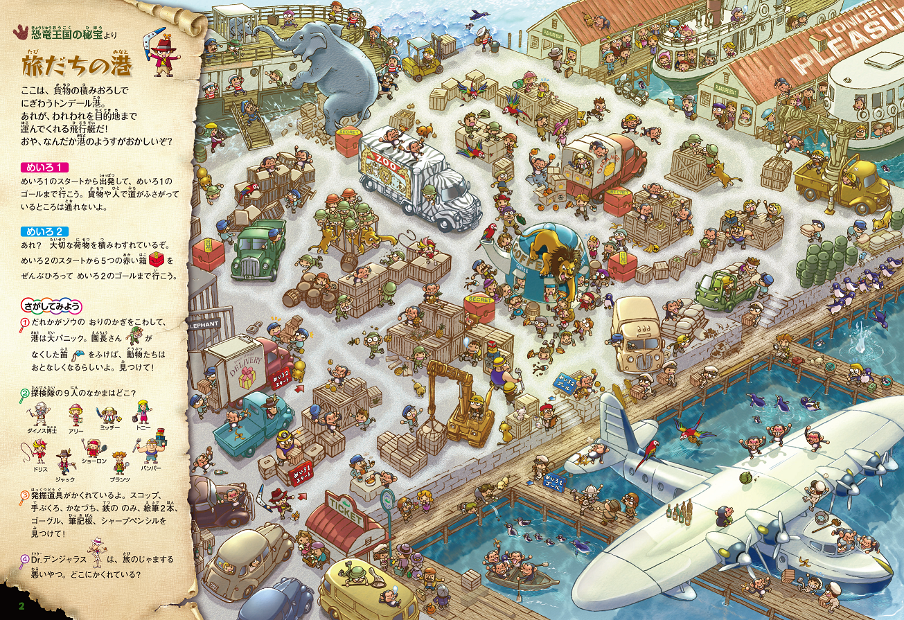 「冒険! 発見! 大迷路」は、ボリュームたっぷりの迷路やさがし絵と、思わずワクワクするイラストの世界観に引き込まれる、大人気の絵本シリーズ。18作目となる今回は、過去の作品から名場面が大集結。24問の迷路と600以上の探し絵が入った、豪華な1冊が誕生しました!