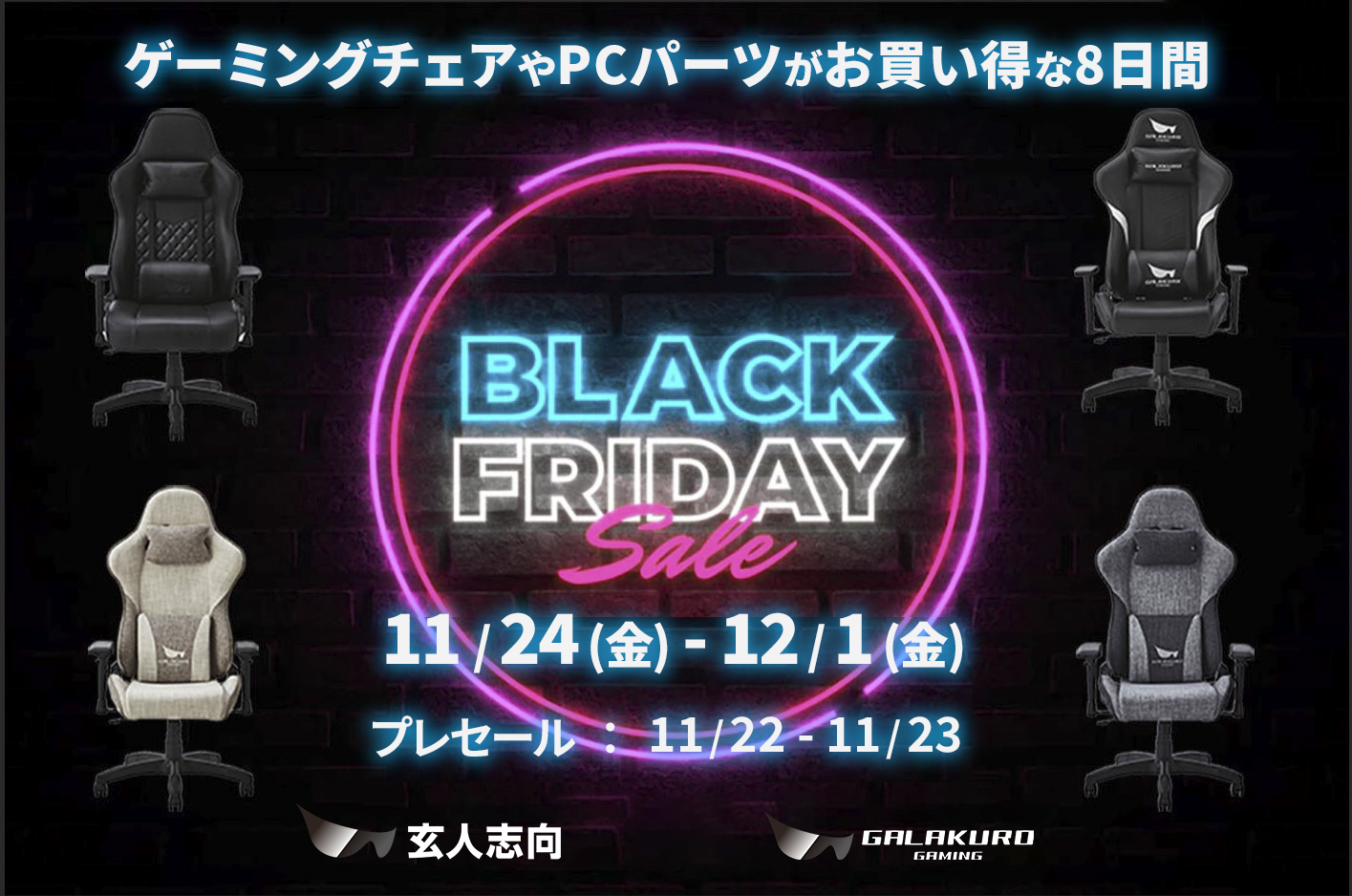 【玄人志向】ゲーミングチェアにグラボ、電源や外付けドライブケースが最大27%オフ!11/22(水)Amazonブラックフライデー先行セールからお得なセール開催!