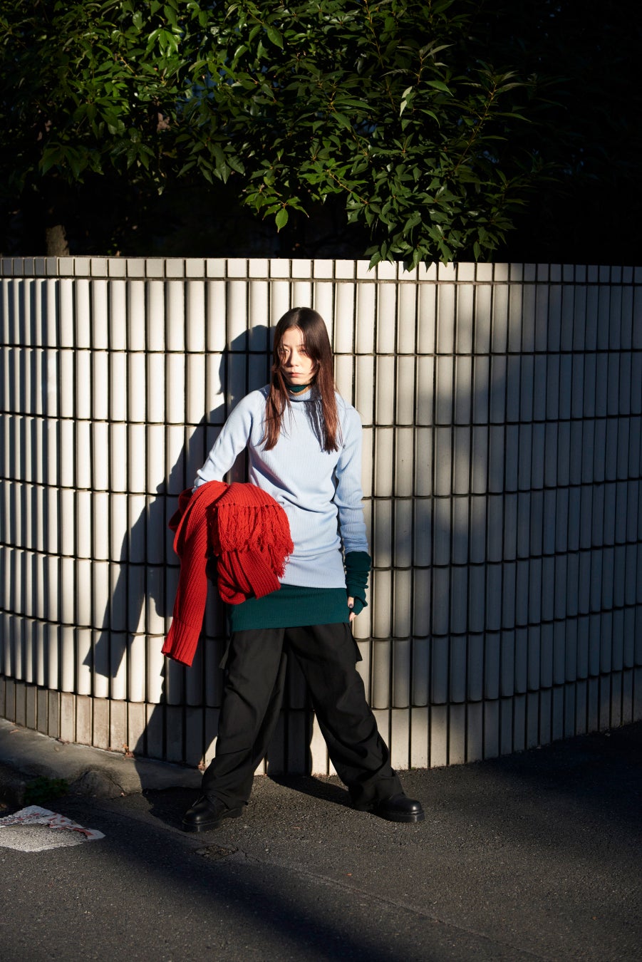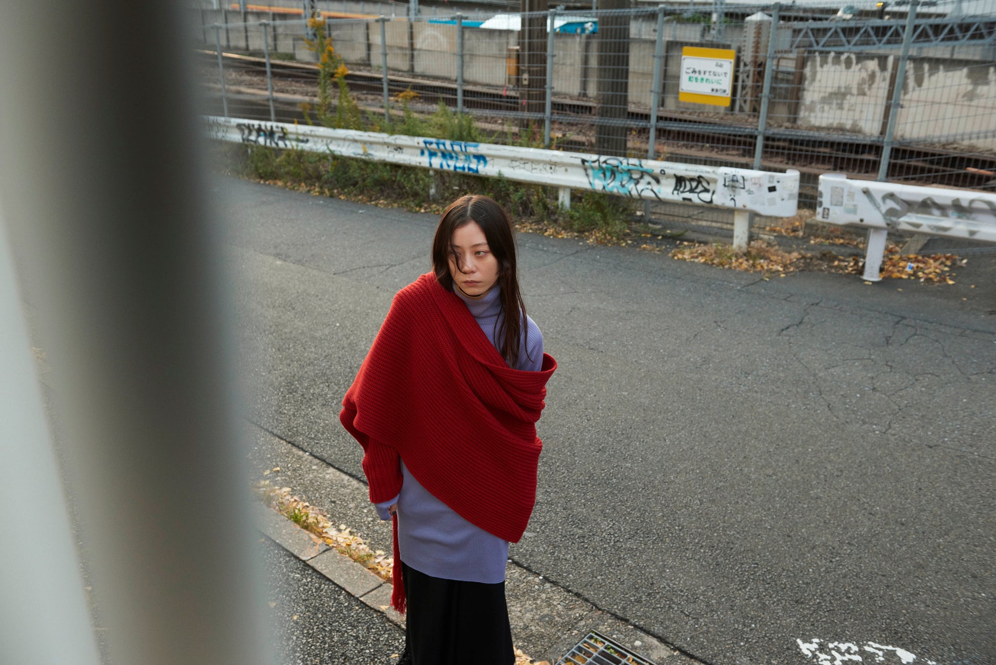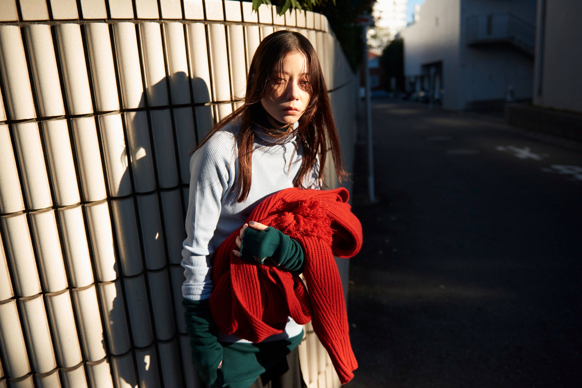 Y's 2003秋冬のニットウェアに着想を得た色彩をレイヤードする表現。様々な色を重ねて着るようにつくられたニットウェアのコレクション。カラー・レイヤードの要素を日常着に取り込み、2024-2025秋冬のピースと合わせたY'sのスタイルを俳優/モデルのSUMIREが纏う。Y'sが表現する、ストリートと人、服の写真。