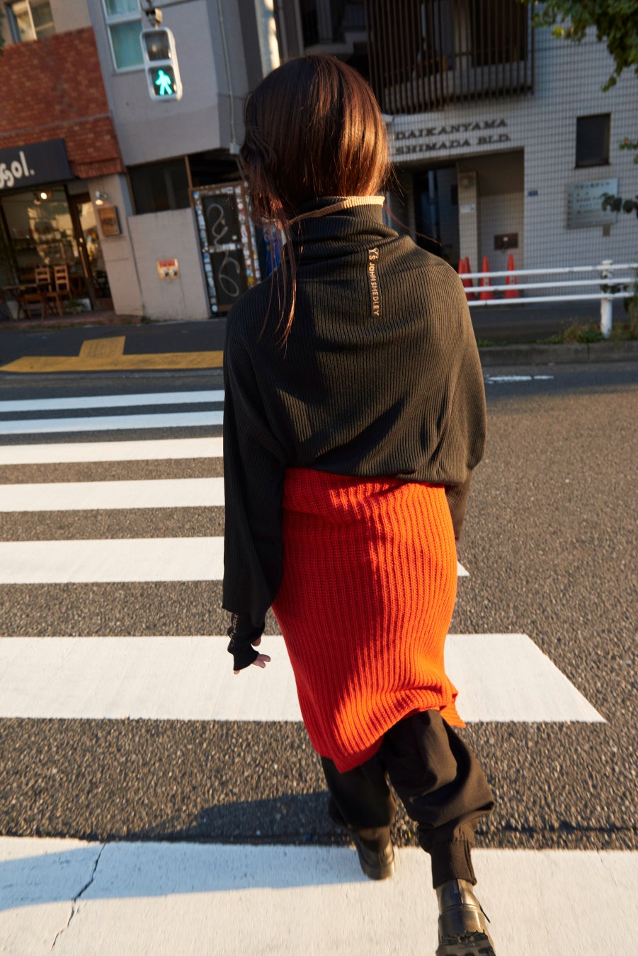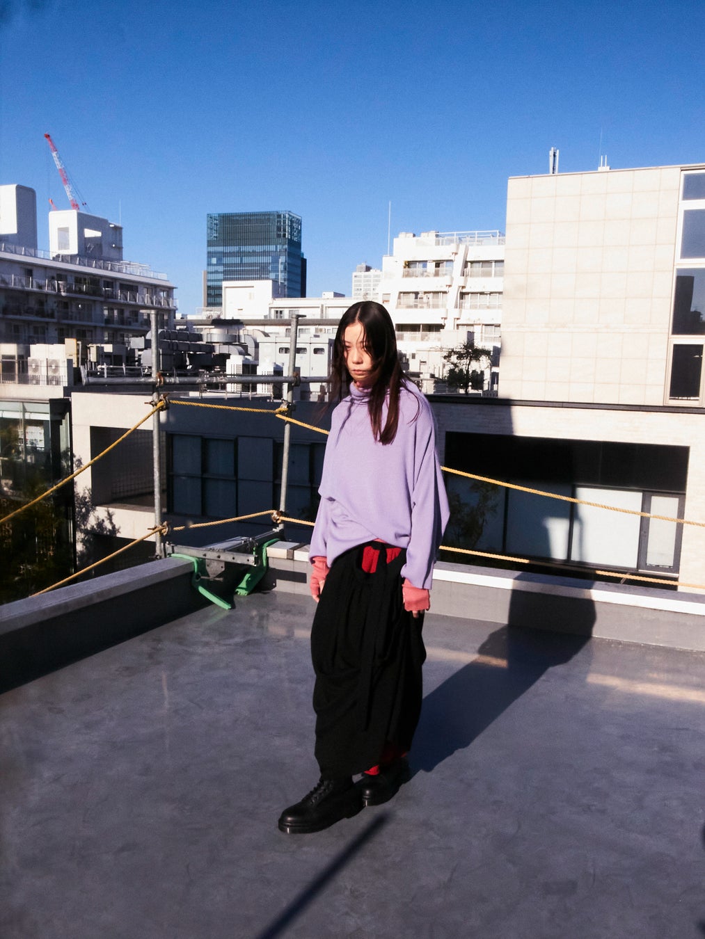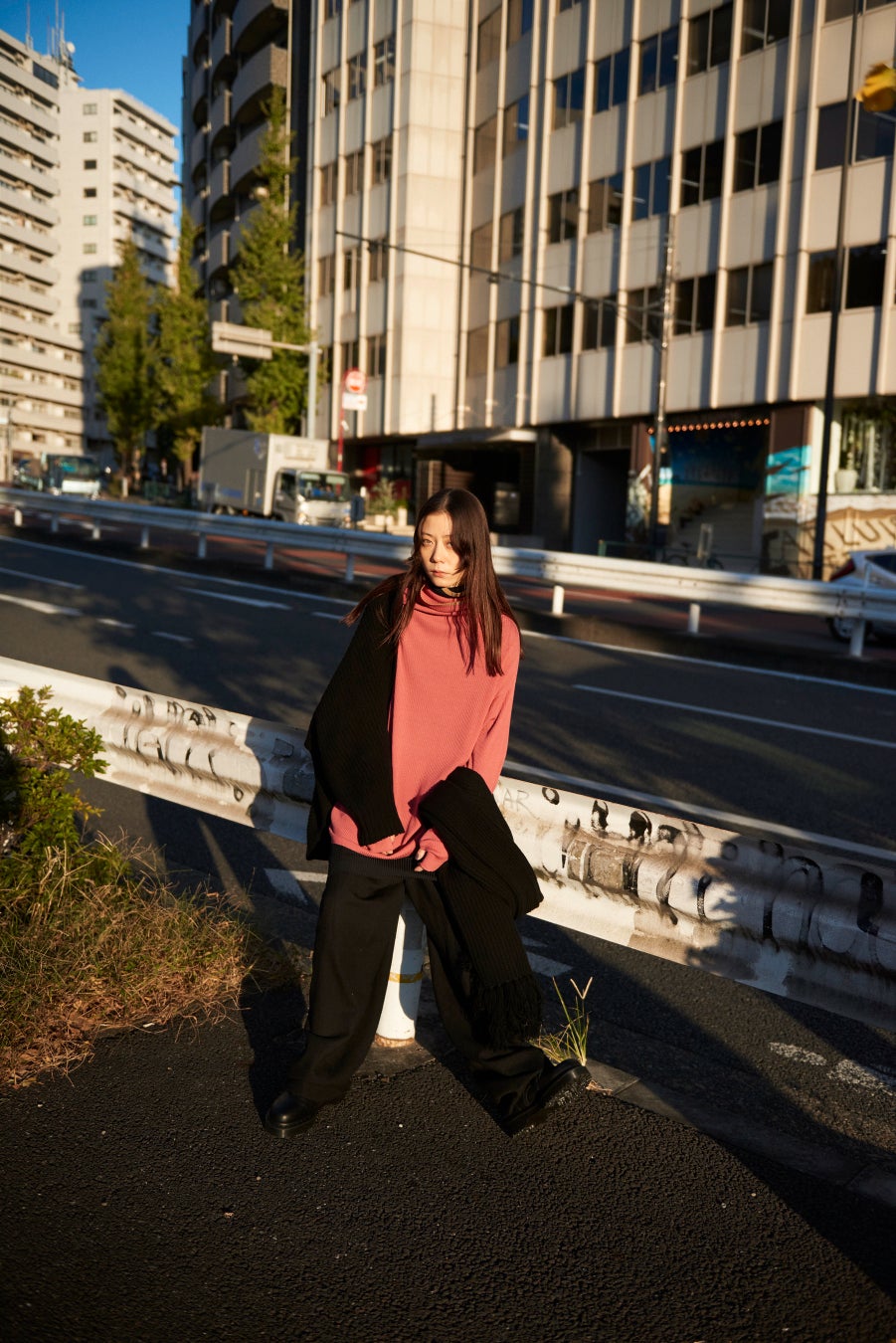 Y's 2003秋冬のニットウェアに着想を得た色彩をレイヤードする表現。様々な色を重ねて着るようにつくられたニットウェアのコレクション。カラー・レイヤードの要素を日常着に取り込み、2024-2025秋冬のピースと合わせたY'sのスタイルを俳優/モデルのSUMIREが纏う。Y'sが表現する、ストリートと人、服の写真。