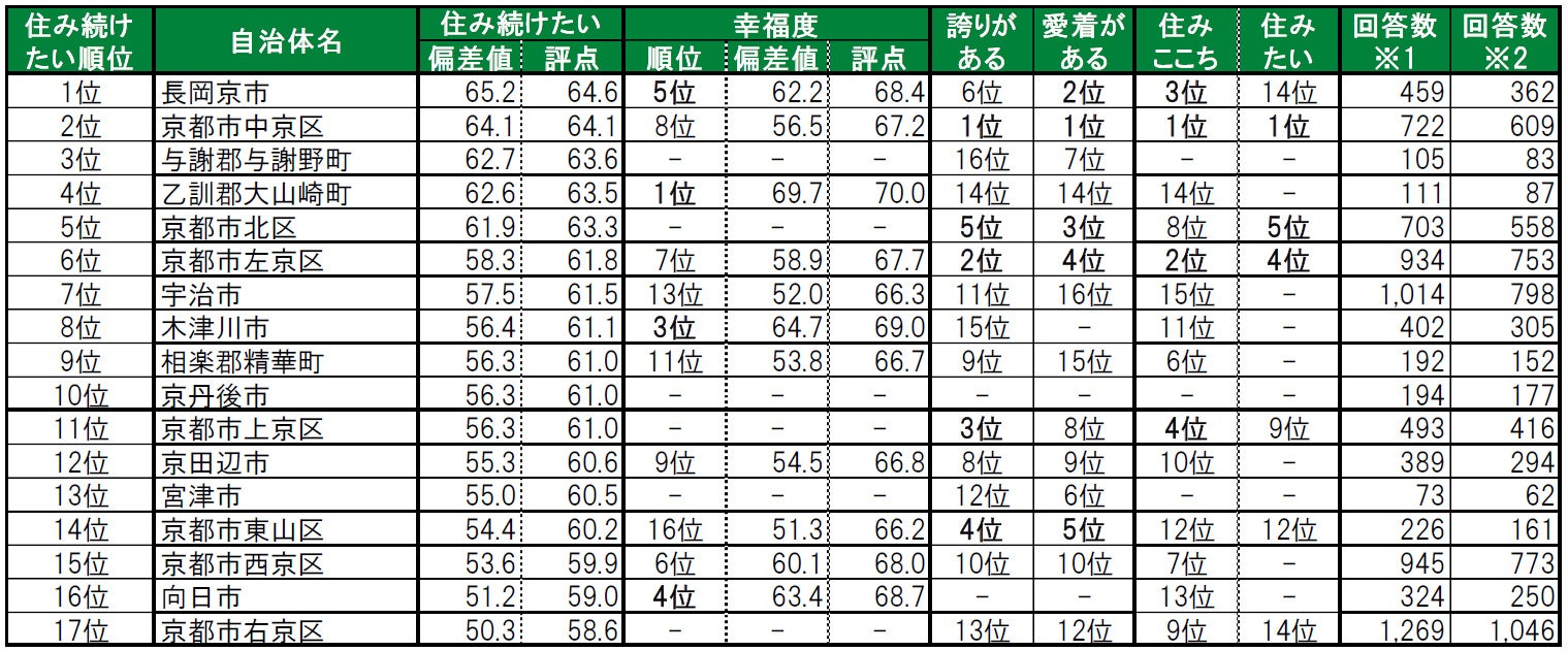 いい部屋ネット「街の幸福度 & 住み続けたい街ランキング2022<京都府版>」(街の住みここちランキング特別集計)発表