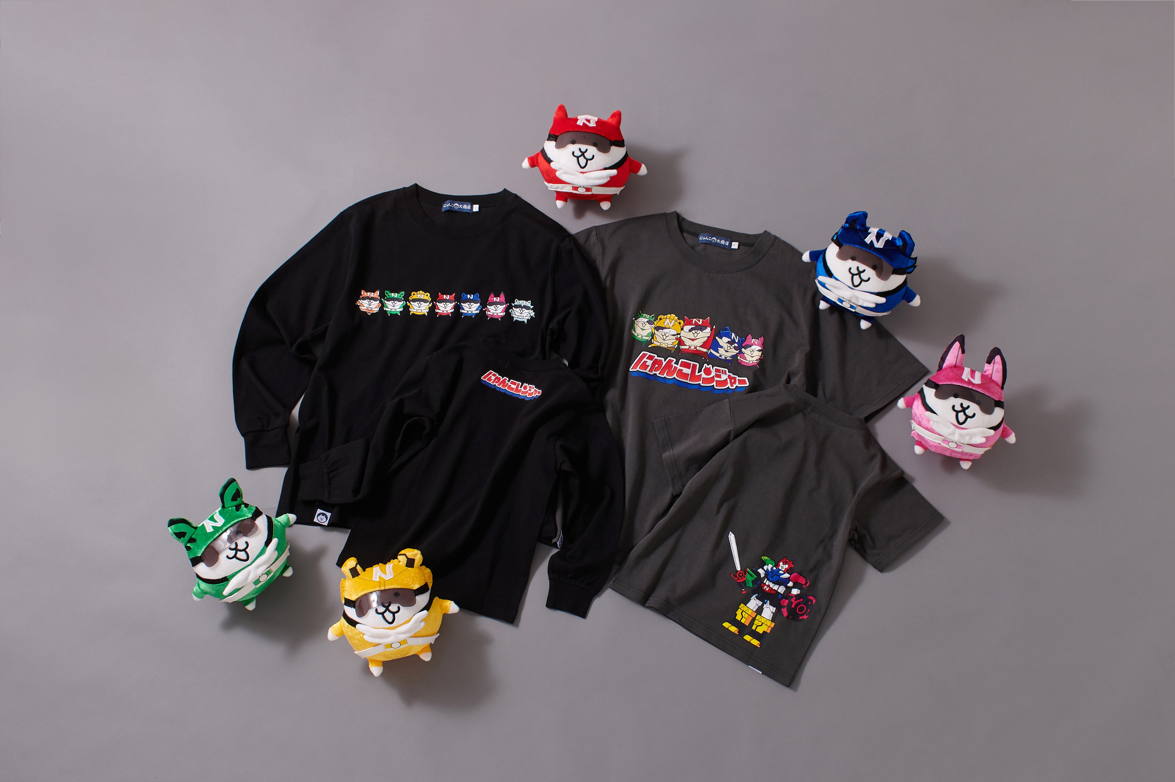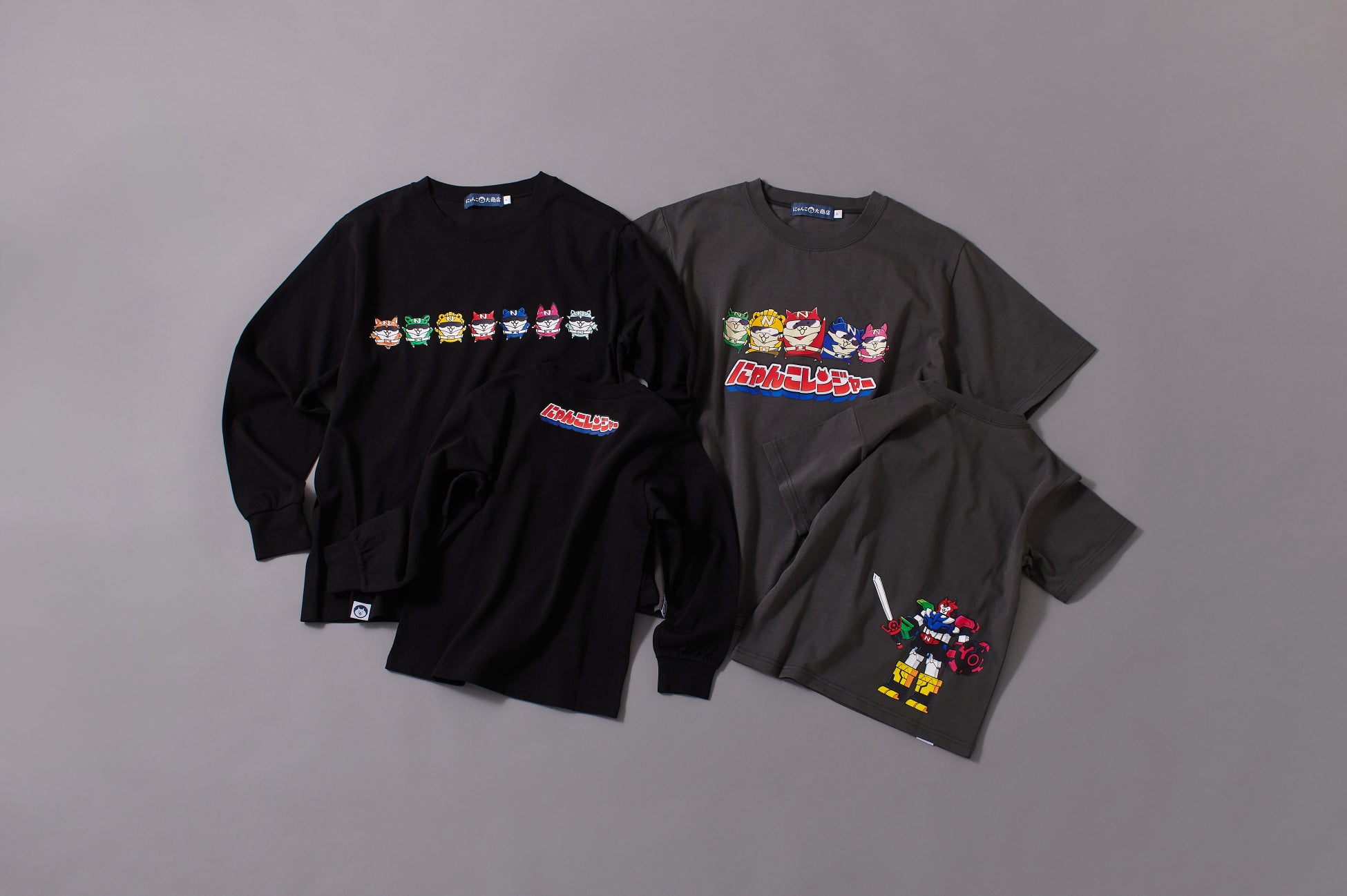 アパレル にゃんこレンジャー 半袖Tシャツ(チャコール)/長袖Tシャツ(ブラック)