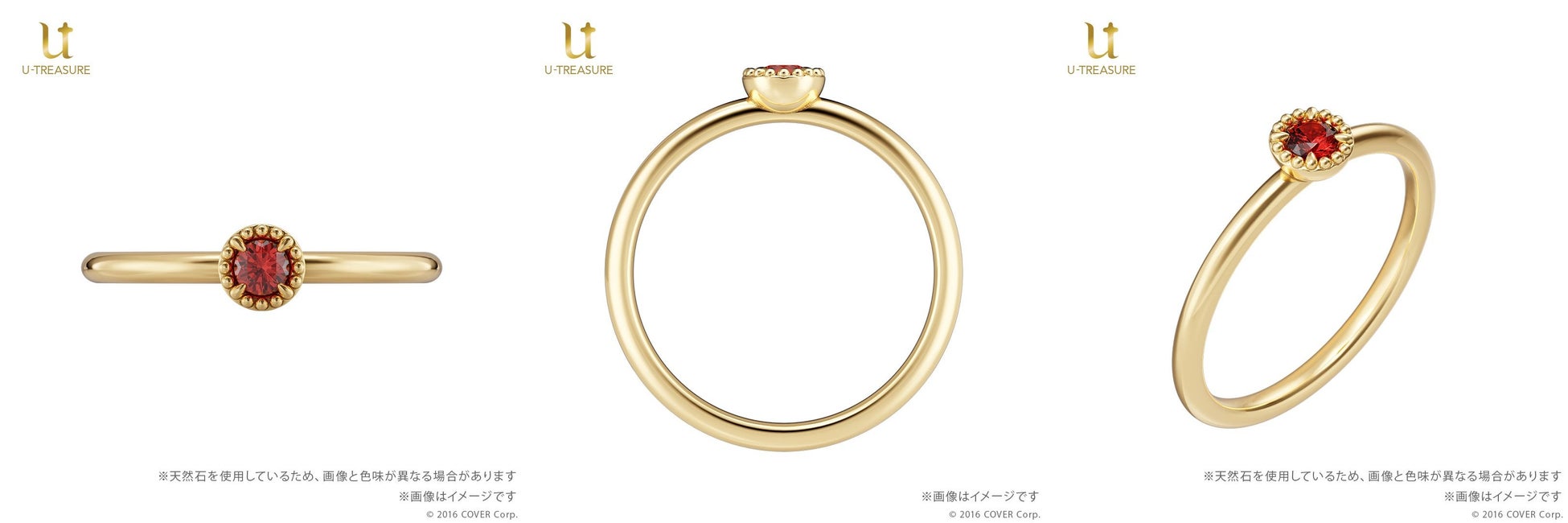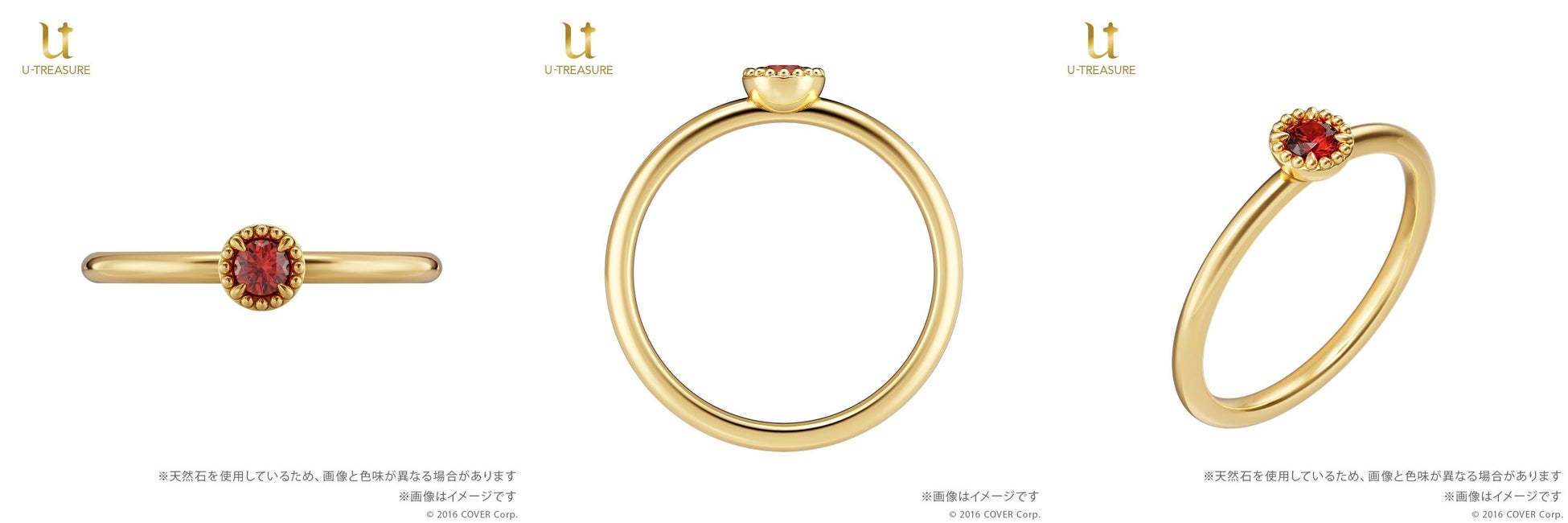 マリン船長の瞳をモチーフに、ガーネットを留めたリング。 深い赤色が魅力的なガーネットは「情熱」「真実」という石言葉を持っています。 同時発売の「宝鐘マリンモチーフリング(眼帯)」と重ね着けもお楽しみいただけるデザインです。 |