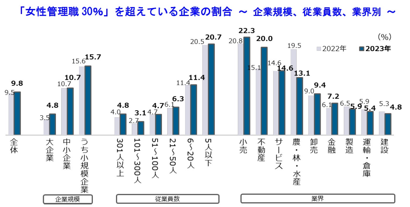 「女性管理職30%」の目標を達成している企業は9.8%に
