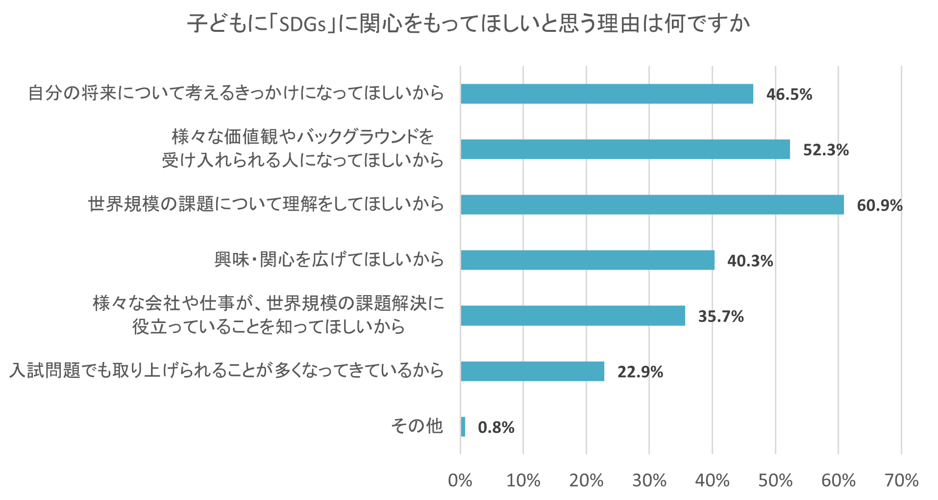 最も多かったのは、「世界規模の課題について理解をしてほしいから」で、60.9%だった。
