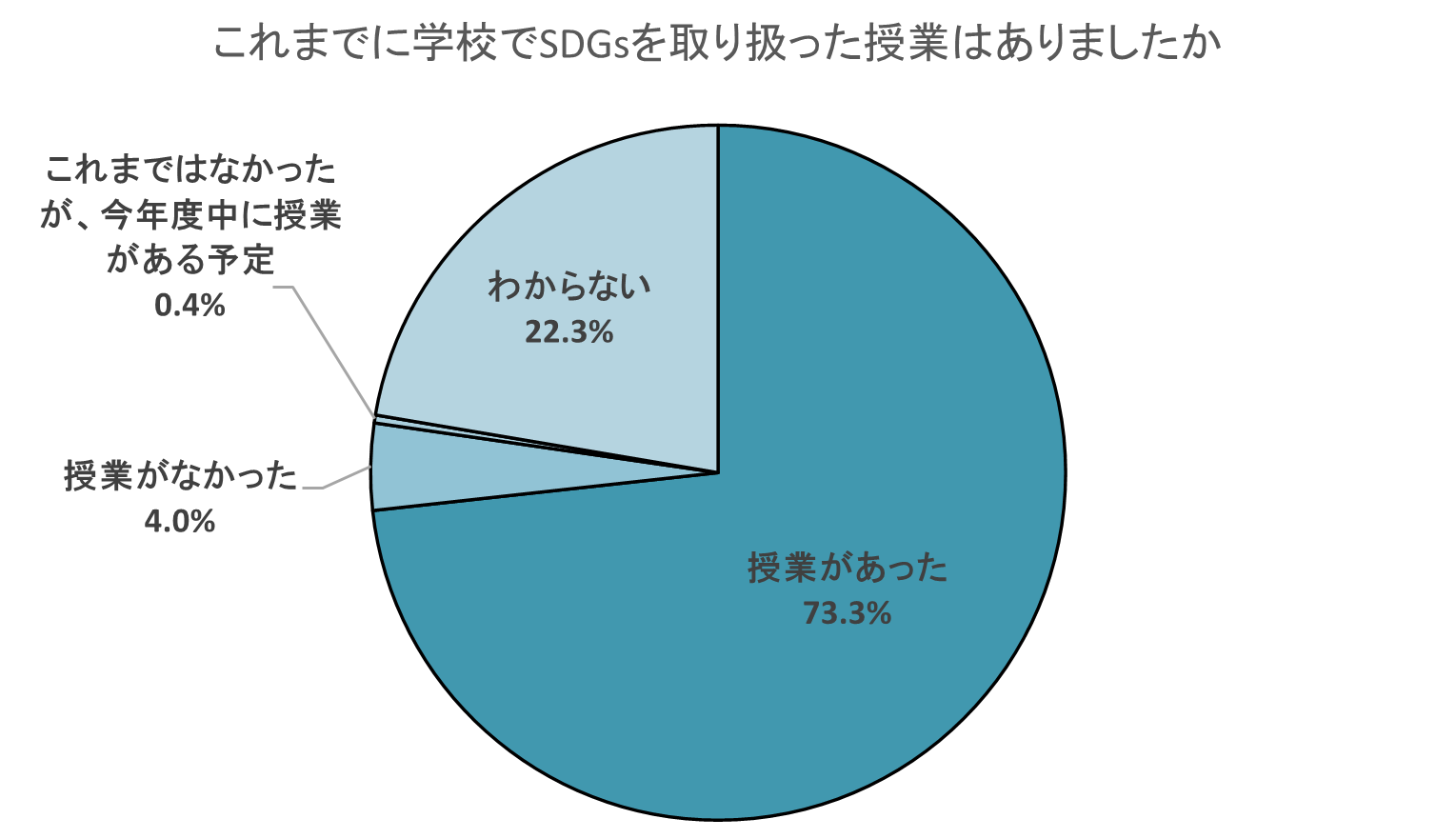 小学校では2020年度から、中学校では2021年度から、高校では2022年度からそれぞれ実施されている新学習指導要領では、「持続可能な社会の創り手の育成」が明記されており、教科書でも取り上げられるなど、学校においてSDGsの授業や取り組みの機会が増えていると考えられる。