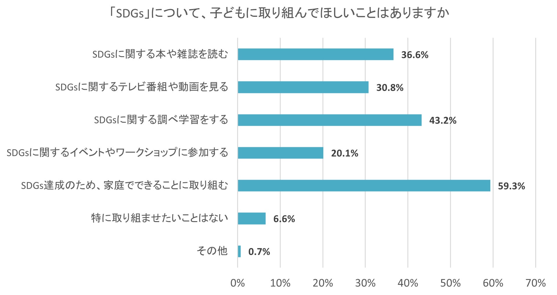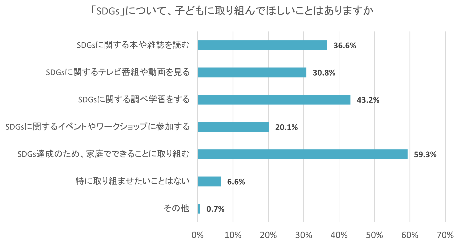 身近に取り組めることを、子どもと保護者が一緒に行うことで、SDGs達成に貢献していきたいと考える保護者が多いようだ。