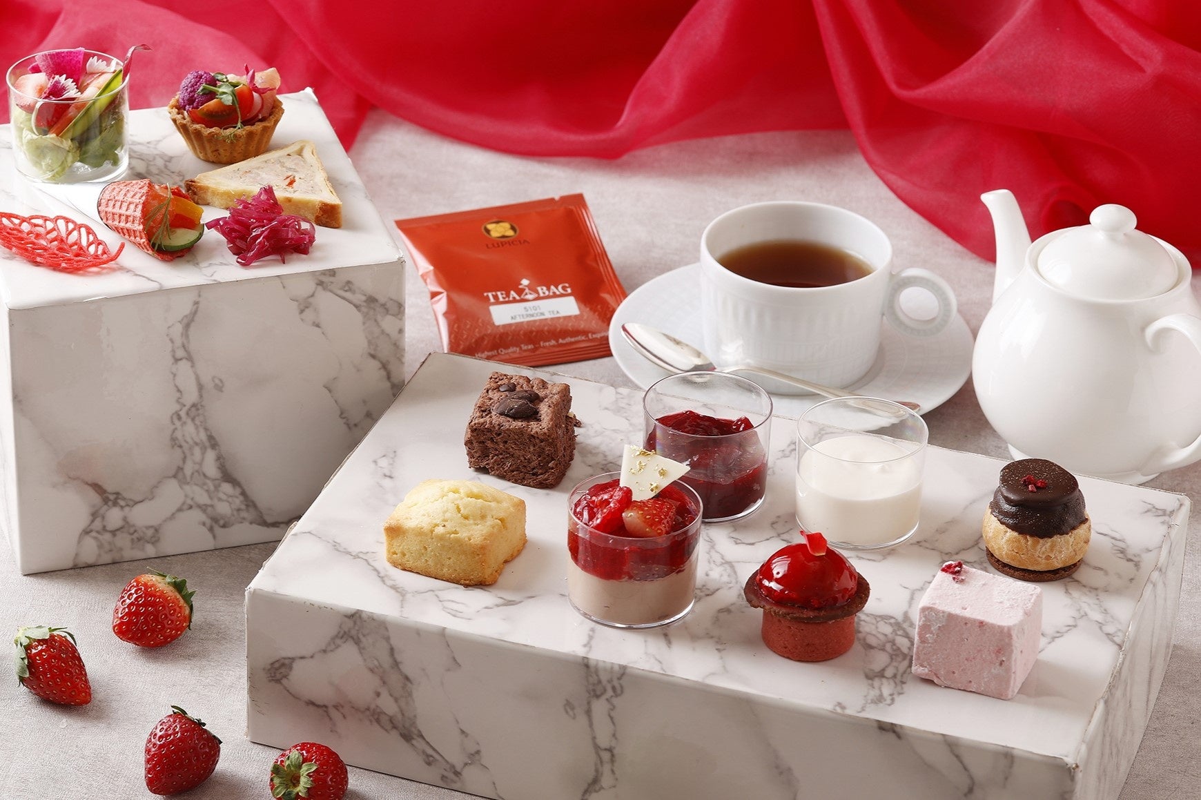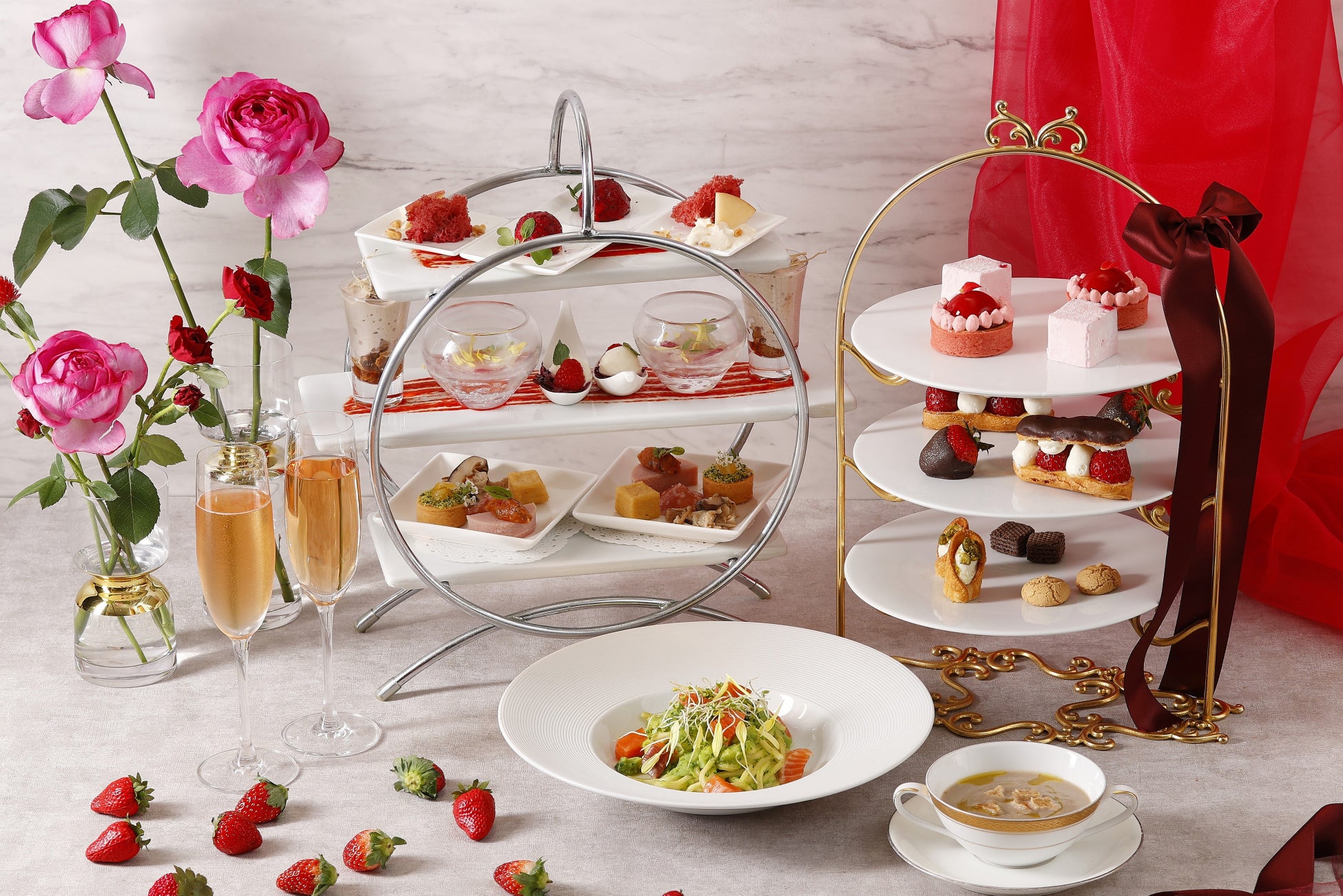 さらに、イタリアンダイニング ジリオンとファインダイニング ラ・プロヴァンスでは、アフタヌーンティースタイルのデザートが付いたランチ&ディナーコースをご用意し、シーンやお好みに合わせてお選びいただけます。また、N.Y.ラウンジブティックでは、テイクアウトのアフタヌーンティーを販売。ホテル全館で、旬のいちごをたっぷり使用したアフタヌーンティーをご堪能いただけます。