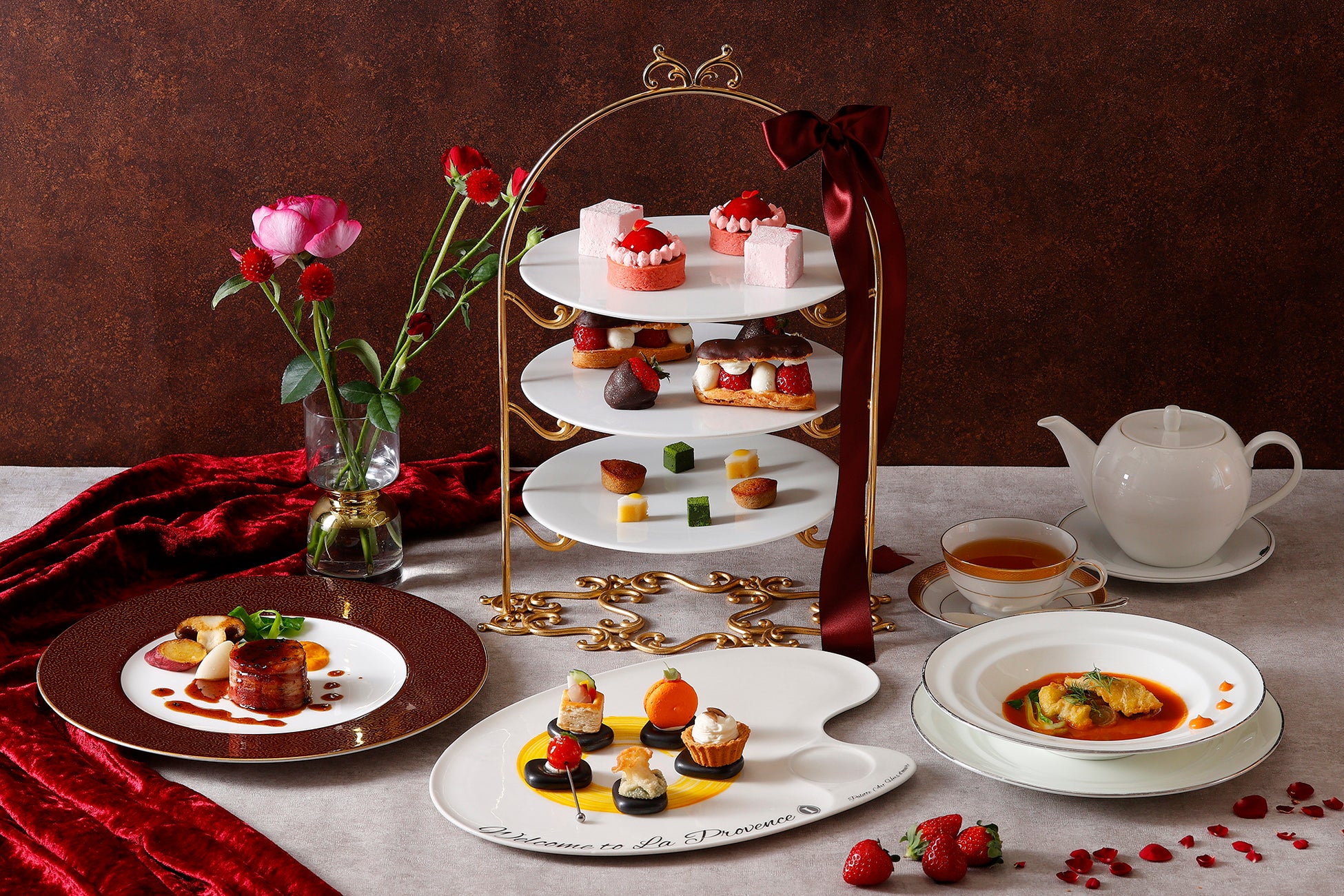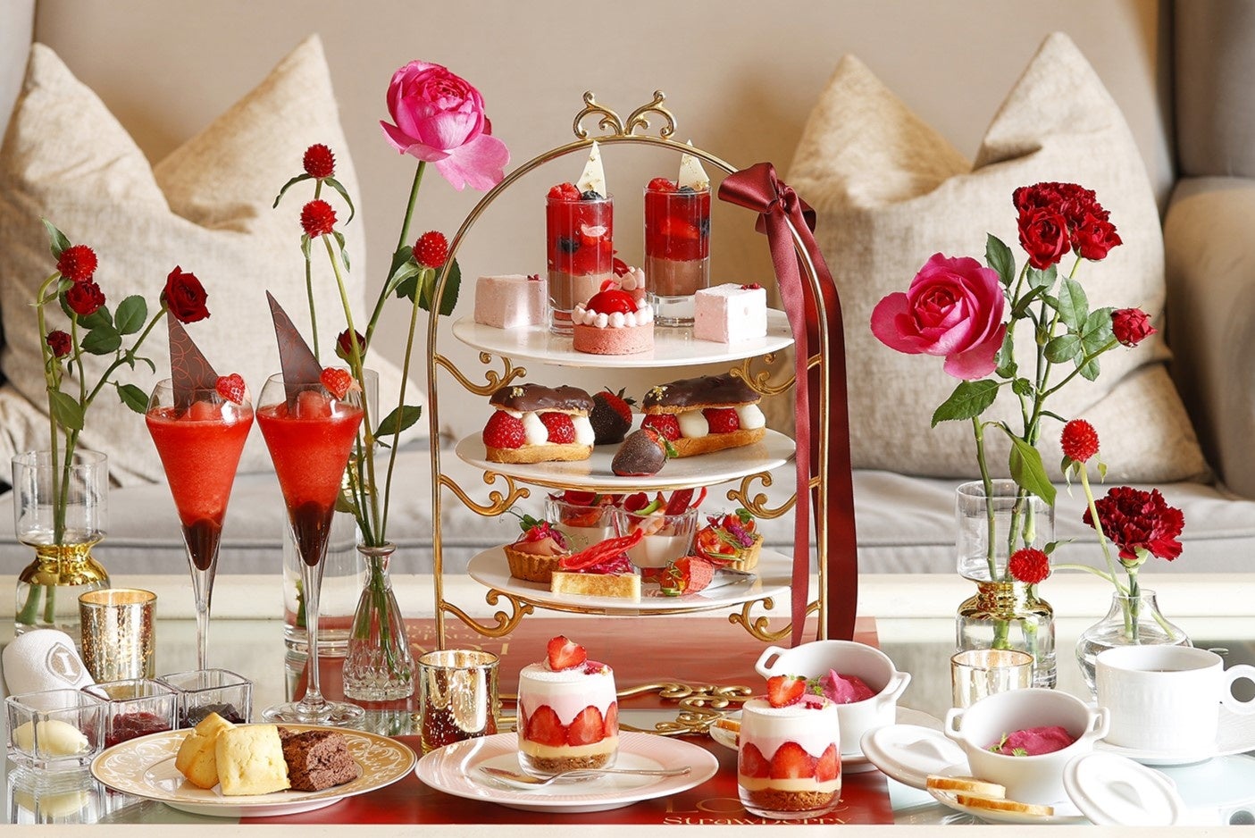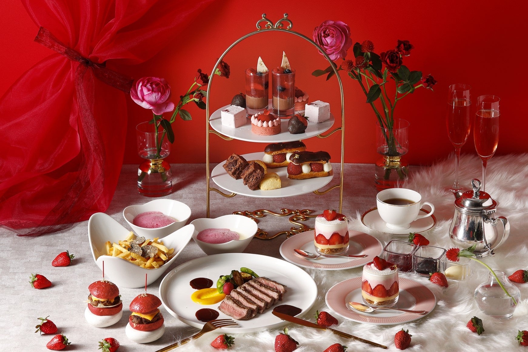 「LOVEストロベリー&ショコラアフタヌーンティー」は、旬のいちごとほんのりビターなチョコレートを掛け合わせた“大人の甘さ“をお楽しみいただけるスイーツやスコーン、そしてフレンチレストランより本格的なセイボリーを取り揃えました。