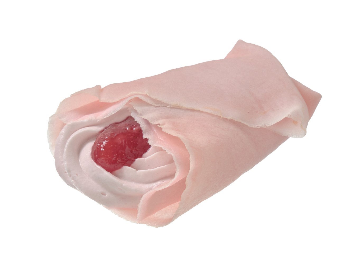 もっちり食感のクレープ生地で、さくら風味の餡とさくらクリーム、果肉入りいちごソースを包んだ和洋折衷クレープです。