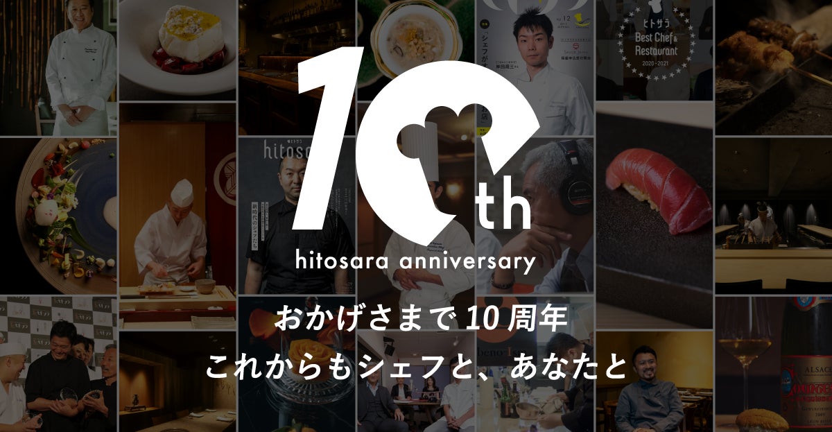 このたび10周年を迎えられましたのも、ひとえに『ヒトサラ』をご利用いただいているユーザーの皆さま、全ての飲食店さま、そしてシェフの皆さまの多大なるご支援の賜物と心より御礼申し上げます。
