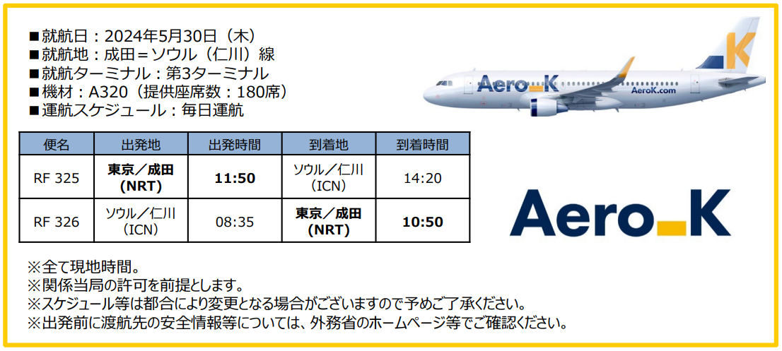 Aero K、2024年5月30日より成田=ソウル(仁川)線に新規就航!