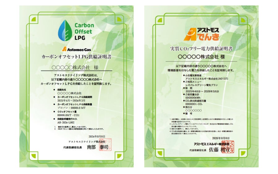 「カーボンオフセットLPG供給証明書」「実質CO₂フリー電力供給証明書」発行の開始