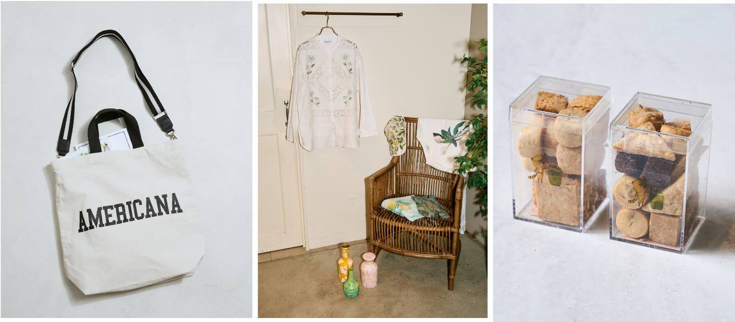 今回、オープン記念として、スペシャルノベルティや天王寺MIO店限定の商品もラインアップ。税込49,500円以上お買い上げの方には「Americana for SALON」の2WAYロゴトートバッグをプレゼントいたします。また、限定商品として「TOLIGHT」や「fuminote」のアソートクッキーなど人気のアイテムを展開いたします。