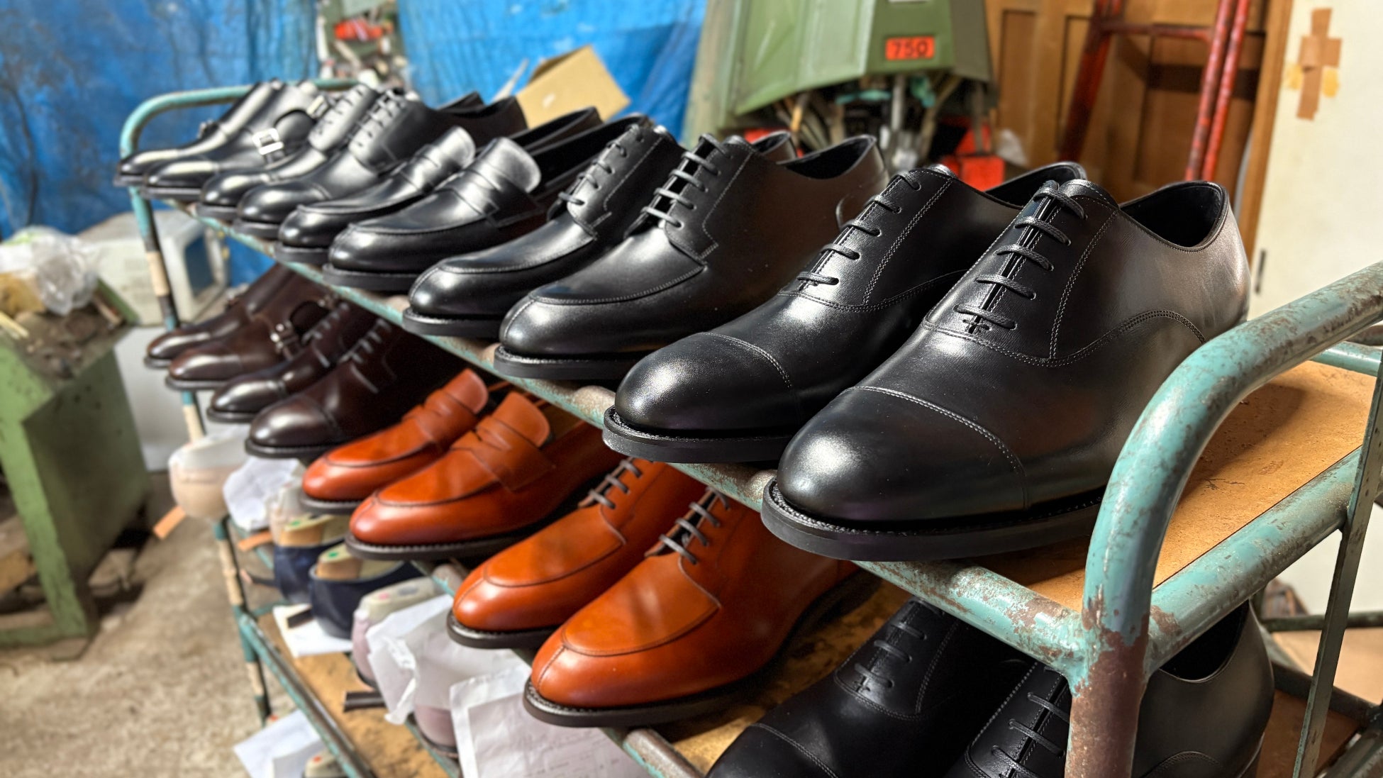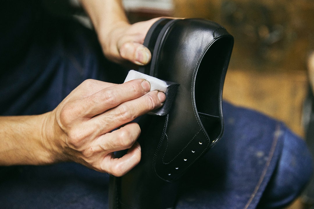 一般的な靴工場では工程ごとの細分化された分業制が主流である中、「三陽山長」の製作工場では、底付け職人がコバ塗りなどの仕上げも一貫して担当するなど、職人一人ひとりが複数の工程を習得。靴づくり全体への深い理解と技術を持つ職人が携わっていることが強みです。