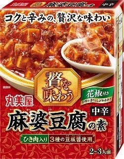 「贅を味わう 麻婆豆腐の素」は本格志向の麻婆豆腐ファンに向けて2014年に発売を開始したシリーズです。花椒付きなので、お好みでしびれる辛さと香りを楽しめます。