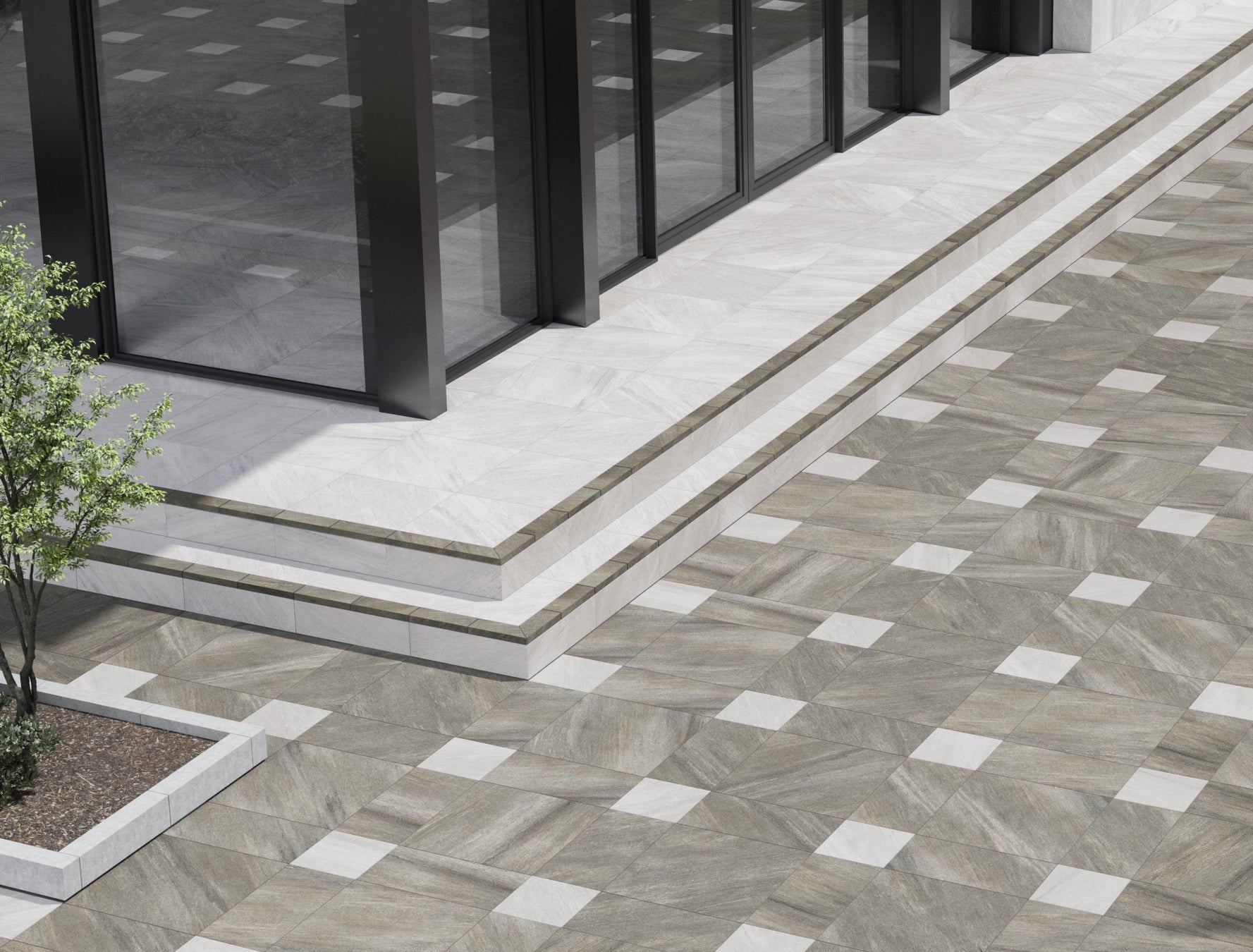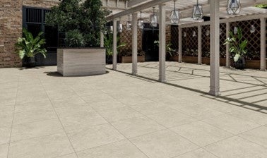 近年、非住宅では大形の床タイルが定着してきているほか、戸建て住宅でも、床タイルの大形化がトレンドとなっています。さらに、子育て世代を中心にタイルでテラスをつくるケースが増えています。
