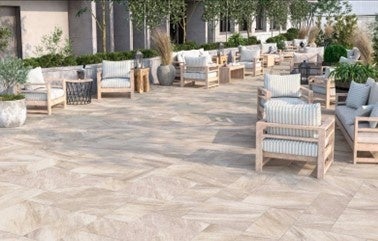繊細な流れ模様を自然に散りばめた砂岩調タイルで、ご使用いただくことで、狭い空間はもちろん広い空間でも筋模様がランダムに広がり洗練された印象に仕上がります。さらに多様な形状を組み合わせることで、目地によるパターンと繊細に散りばめられた筋模様が交わりアクセント性が強まります。