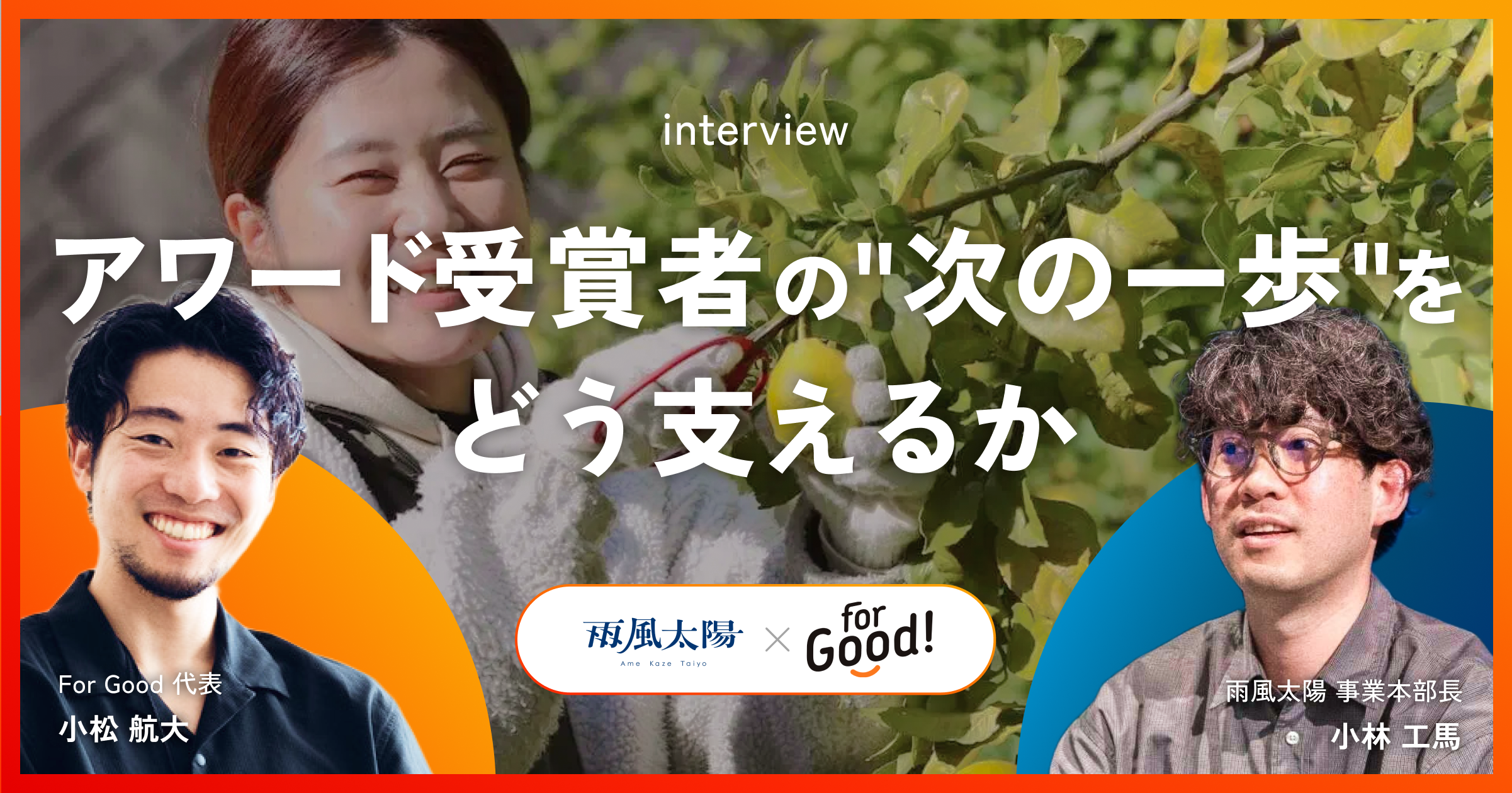 今回の連携にあたり、For Good×雨風太陽による対談インタビューを実施いたしました。地方の事業者が抱える課題と、今回の連携に込めた想いを深く掘り下げています。