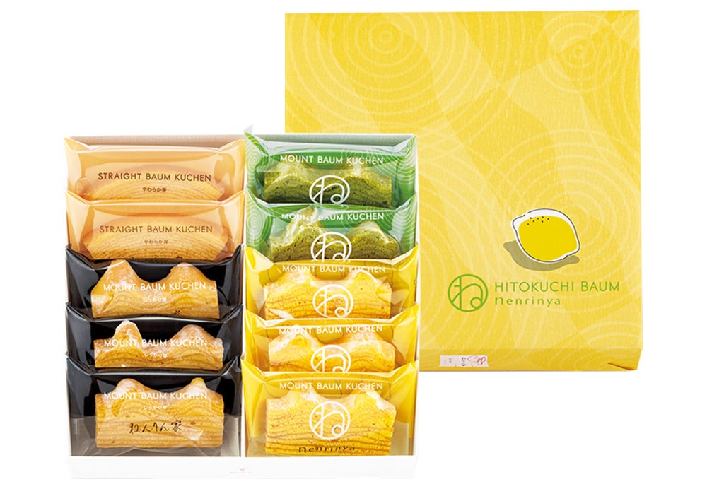 ねんりん家のバームクーヘンを 上品なひとくちサイズで⼀度に楽しめるセットです。バター⾵味たっぷりの代表作「ひとくちマウントバーム しっかり芽」。地中海レモンが爽やかな夏の新作「レモン⾹るマウントバーム」。芳醇宇治抹茶⾹る「ひとくちマウントバーム お抹茶」たまごたっぷり「ひとくちストレートバーム やわらか芽」。