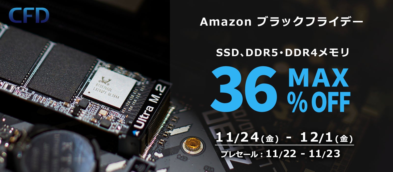 【CFD販売】高速M.2 NVMe接続 SSDやDDR5・DDR4メモリが最大36%オフ!11/22(水)Amazonブラックフライデー先行セールからお得なセール開催!