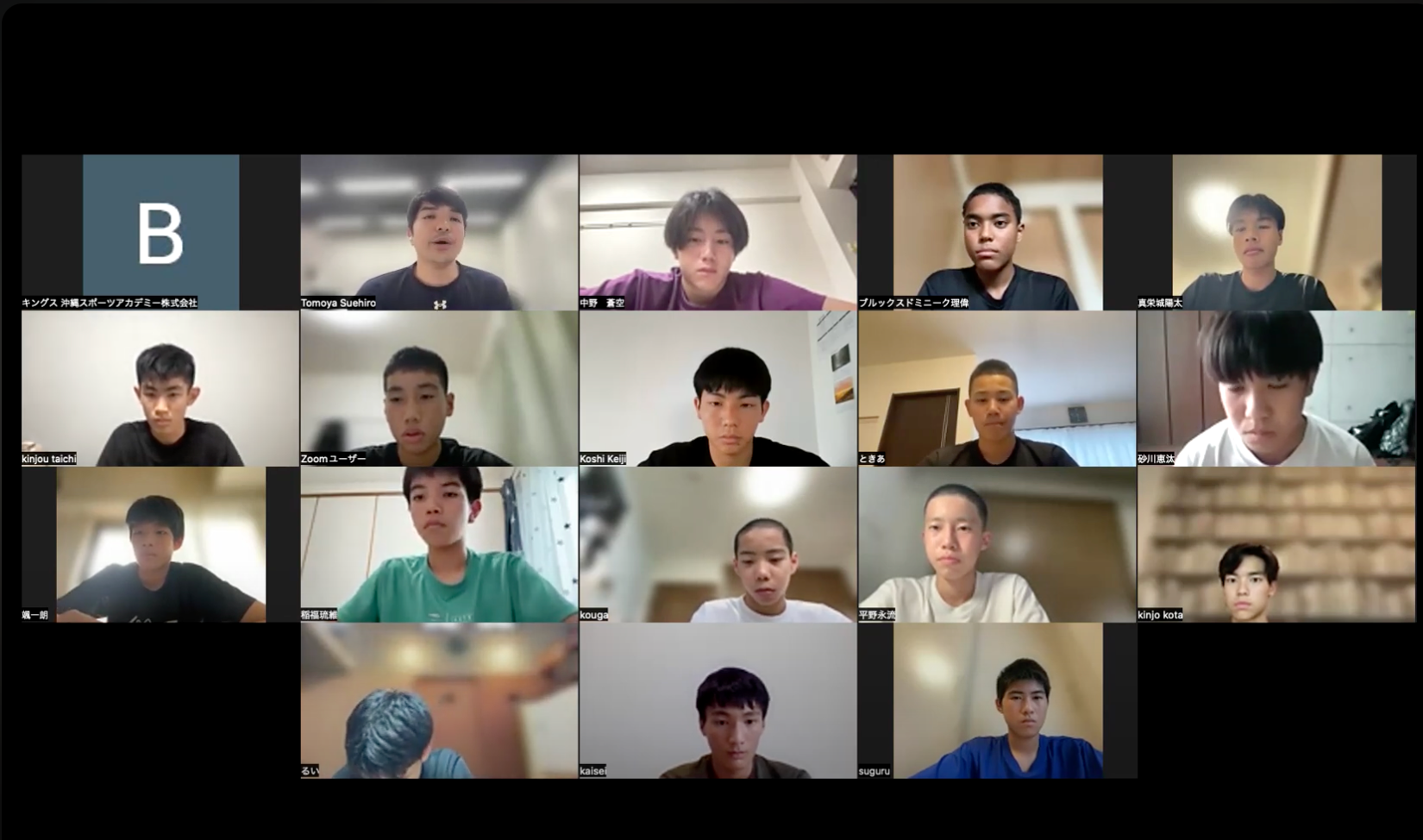 この4月からは週に一回、コートでの練習がない日にAチーム、Bチームに分かれて「オンラインプラクティス」を行っています。バスケットボールの技術や人間性の向上などをテーマに毎回お題が設けられ、各選手がみんなの前で自分の考えや意見を発表します。