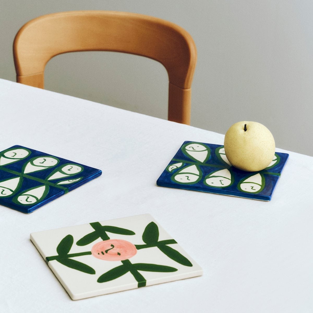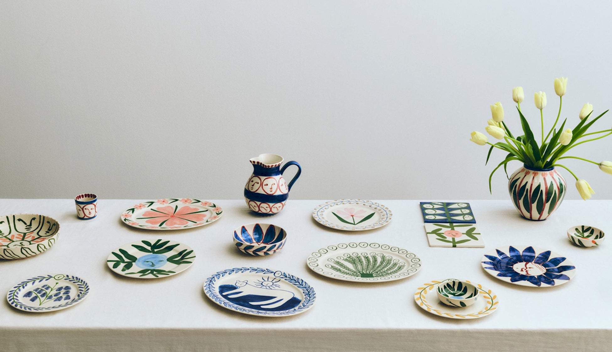 イタリア語で「絵画」を意味するこのコレクションは、エマ・コールマン(以下、コールマン)の表現豊かなモチーフを日常の器に映し出したもの。プレートやマグ、ジャグなどに描かれたモチーフは、手に取り、使い、分かち合うことで暮らしに寄り添うキャンバスとなります。デザイナー自身も「HAYのための絵画的コレクション」と呼ぶように、アートと日々の暮らしが自然に交わるシリーズとなっています。