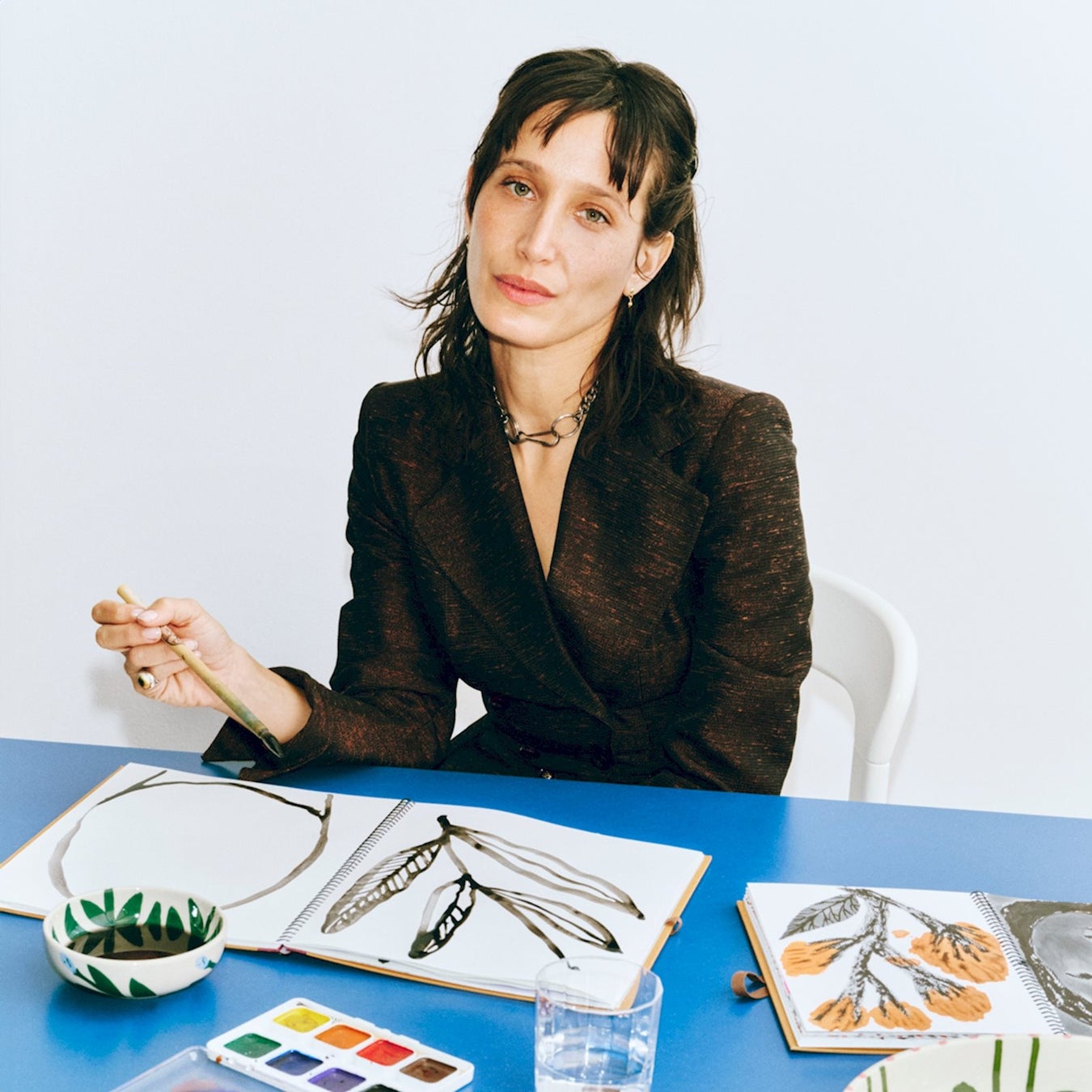 コールマンの制作は直感的で、生き生きとしています。神話や愛、渦を描く花の茎、人体、建築構造など、インスピレーションは多彩で自由です。「LA PITTURA」の制作にあたり、コールマンはニューヨークのメトロポリタン美術館で視覚芸術の歴史をじっくりと探求しました。アールデコのデザインやデンマーク陶芸などから着想を得ており、幼少期からの陶磁器への関心や、文化を超えた形の変化への好奇心が、のびやかな筆づかいと直感的なモチーフとなって作品に息づいています。