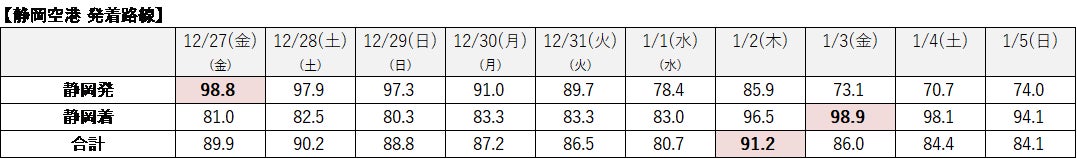 FDA 静岡空港発着 2024年度 年末年始期間のご予約状況について