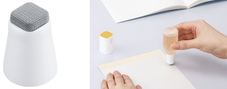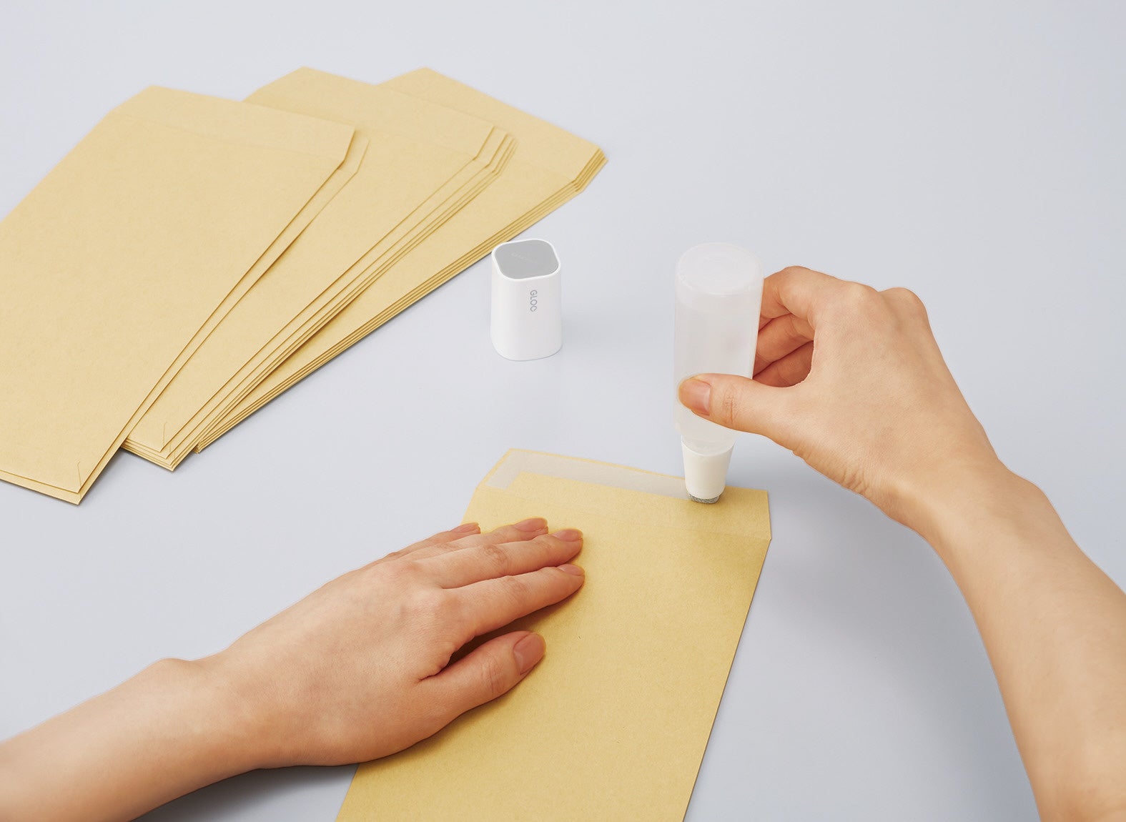 2023年2月発売の「GLOO 液体のり」は、スポンジヘッドを四角くし、紙の角まで塗りやすくすることで、のりがはみ出にくく、手や周りを汚しにくい設計を施しています。塗った後、波のようなうねりのない仕上がりで、キレイに接着できるオリジナル処方ののり「シワなくキレイ」タイプも開発し、使用時のストレスを軽減する液体のりです。