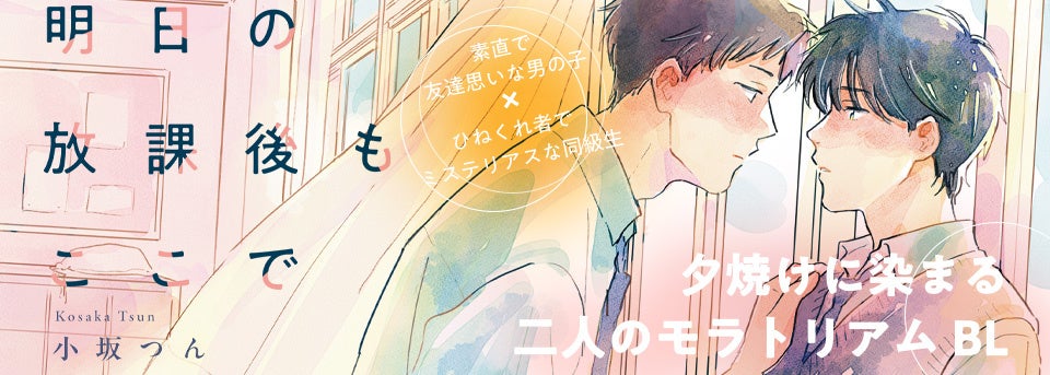 俺とお前のふたりのないしょ。【素直で友達思いな男の子×ひねくれ者でミステリアスな同級生】夕焼けに染まる二人のモラトリアムBL!『明日の放課後もここで』発売