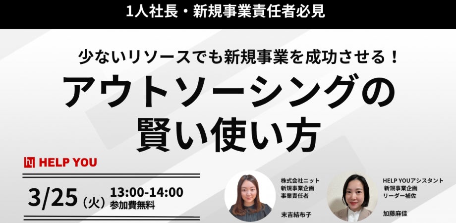 【1人社長・新規事業責任者必見!】限られたリソースで新規事業を成功に導くアウトソーシング戦略セミナー開催<3月25日(火)13:00〜>