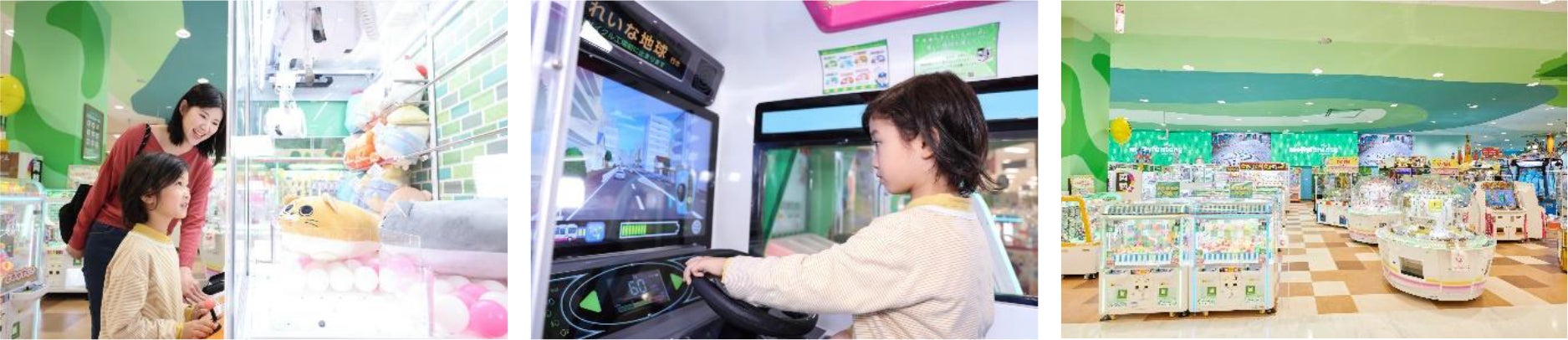 小さなお子さまでも遊べるのりものから、大人気のクレーンゲーム・メダルゲームなど、目移りするような楽しい遊びがいっぱい。