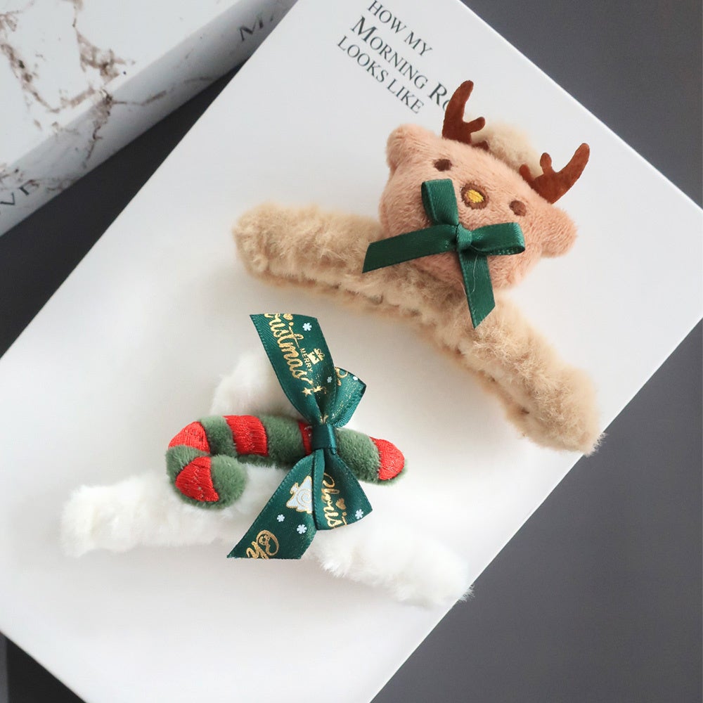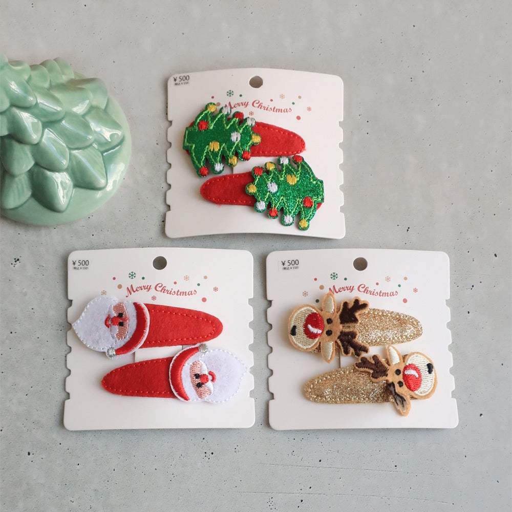 サンタクロースやツリーなど、クリスマスを彷彿とさせるモチーフのヘアアクセサリー。