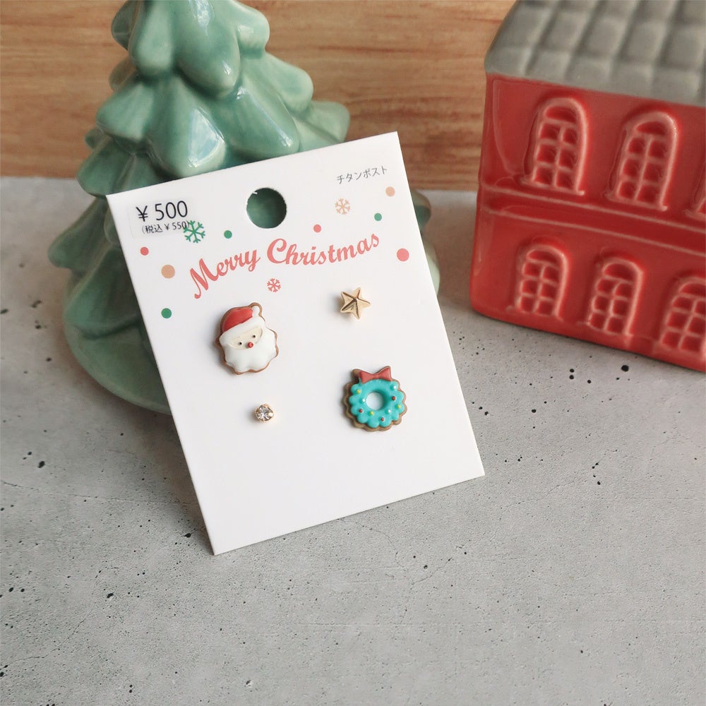 商品名:クリスマスチタンピアス / サンタクロース×リース