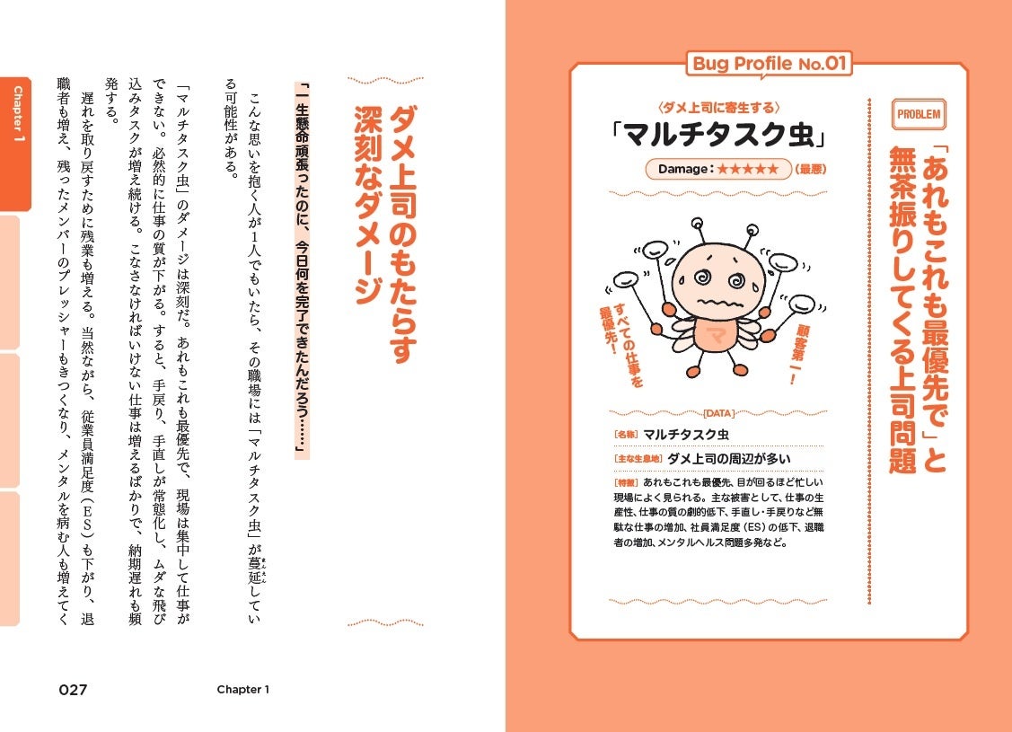 本書は、組織のパフォーマンス低下の原因となる「会社に潜む害虫」を特定。その「害虫」たちを図鑑のようにまとめ、その「生態」を明らかにしながら、「退治方法」までを解説した書籍です。
