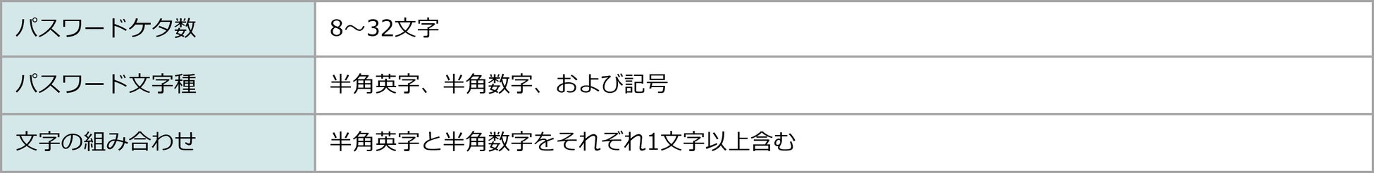 セキュリティ強化を目的として、パスワードのケタ数・使用できる文字種をふやせるように、パスワード設定条件を次の通り変更します。