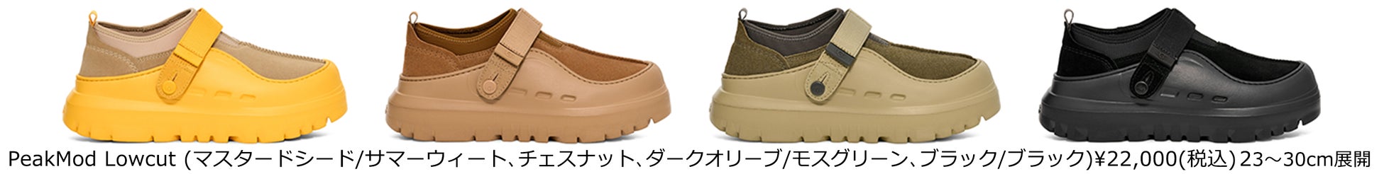 調節可能なストラップ付きで、ボリューム感のあるモールドシェイプの PeakMod Lowcut(ピークモッド ローカット)は、スエードとネオプレン素材を大胆にミックスし、サトウキビ由来の EVA を使用した反発性の高いソールを採用。マイクロファイバーライニングから軽い履き心地まで、心地よさ抜群の軽量スリッポンです。