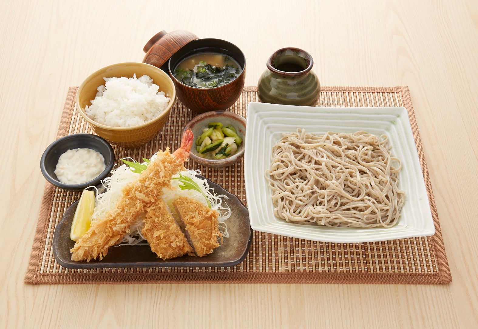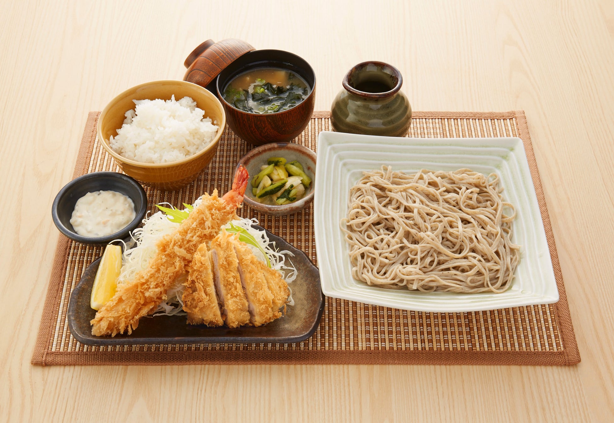 「海老・ロースかつと石臼挽き蕎麦ランチ」