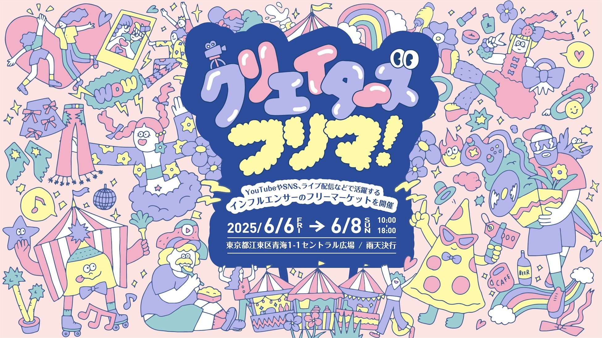 UUUM株式会社(本社: 東京都港区、代表取締役社長: 梅景 匡之、以下「UUUM」)は、YouTubeやSNS、ライブ配信などで活躍するインフルエンサーが、動画等で紹介したアイテムやグッズ、お気に入りの私物などさまざまなアイテムを出品するフリーマーケット「クリエイターズ フリマ!」をシンボルプロムナード公園 セントラル広場(東京都江東区)で2025年6月6日(金)〜8日(日)に開催します。出店するクリエイターの追加ラインナップや特設企画などをご紹介します。
