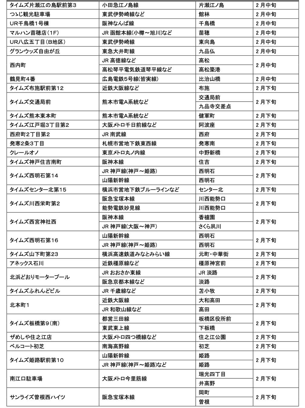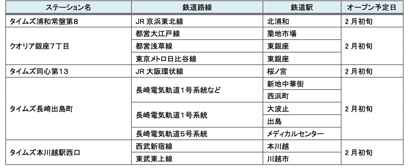 パーク24株式会社(本社:東京都品川区、社長:西川光一)は、温室効果ガスの排出量削減に繋がる移動法「パーク&ライド」および「レール&カーシェア」が可能なタイムズパーキングおよびタイムズカーステーションの2025年2月におけるオープン予定をお知らせいたします。