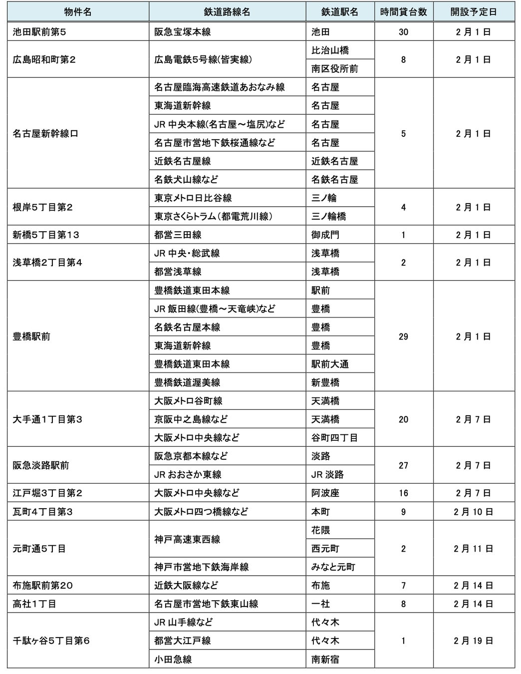 2月にオープンおよびオープン予定の「パーク&ライド」に適した駐車場は22件、「レール&カーシェア」に適したステーションは185件です。