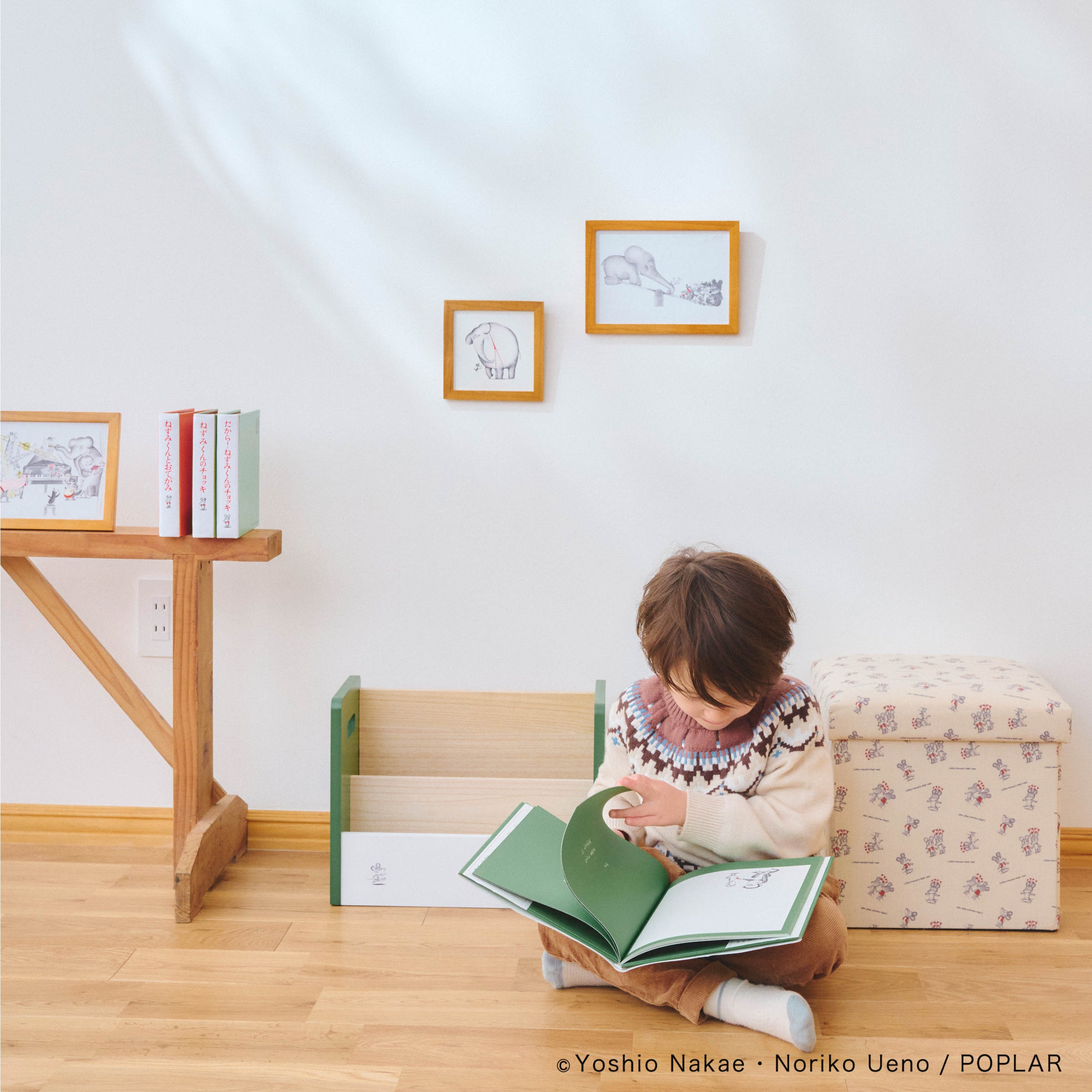 ・絵本ラック ¥4,400 ・アートボード ¥660 ・アートボードワイド 各¥880 ・収納スツール ¥2,650・エンプティブック 各¥1,540