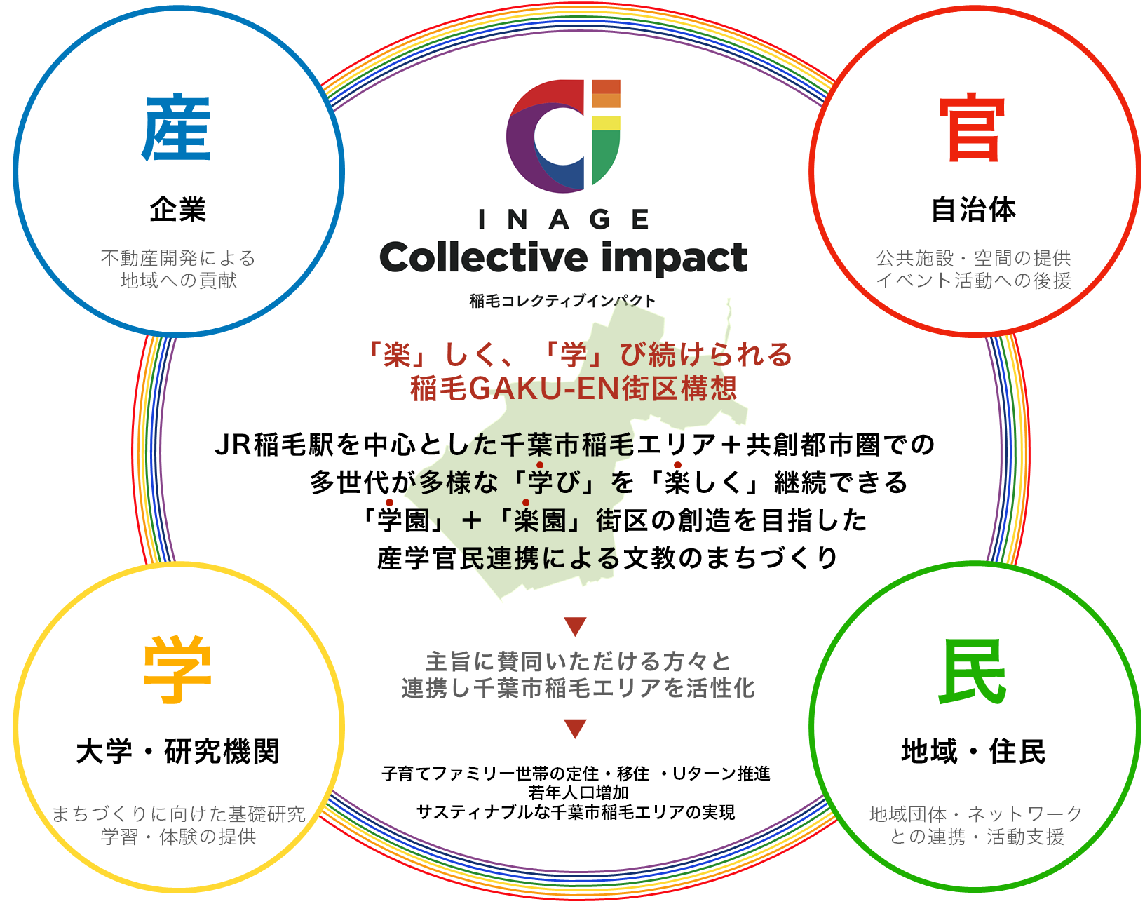 このたび6月に設立される任意団体組織「稲毛コレクティブインパクト」では、千葉市稲毛区周辺地域の社会課題に対し、企業、団体、地方公共団体、研究機関等が連携し、解決に向けて具体的な活動に取り組むことを目的としています。