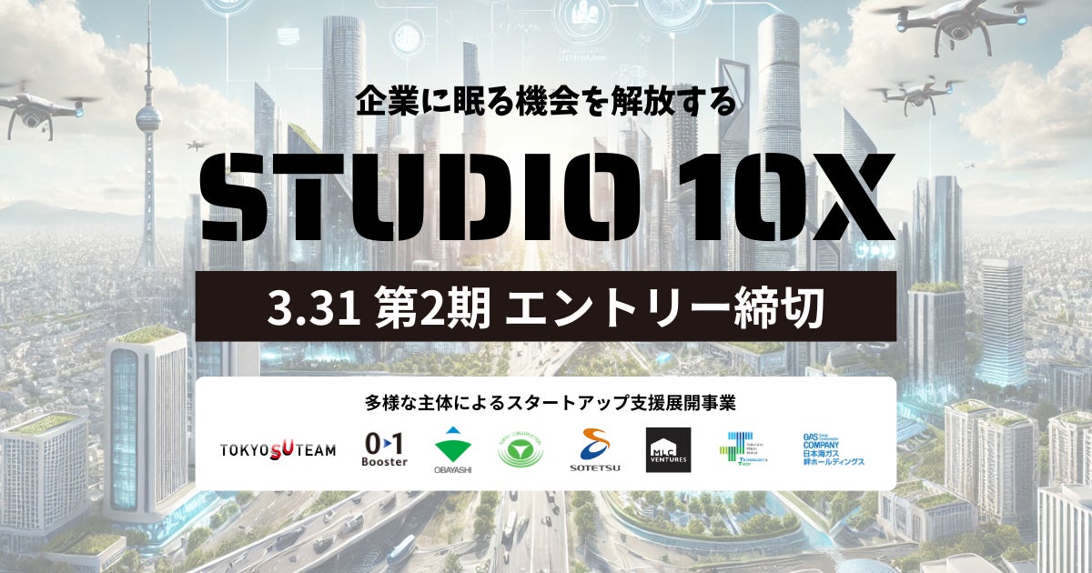 東京都協定事業「多様な主体によるスタートアップ支援展開事業(TOKYO SUTEAM)」に採択された株式会社ゼロワンブースター(本社:東京都千代田区、代表取締役:合田ジョージ)は、建設・不動産・まちづくり・物流・環境領域におけるスタートアップ創出プログラム「STUDIO 10X」の第2期参加者を募集します。