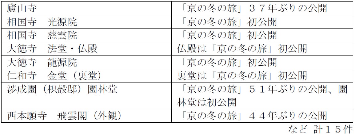 ※「京の冬の旅」の各企画は、お問い合せ先が企画ごとに異なります。お問い合せ先の詳細は「京の冬の旅」イベントガイドブックや京都観光オフィシャルサイト「京都観光Navi」内特設ページをご参照ください。