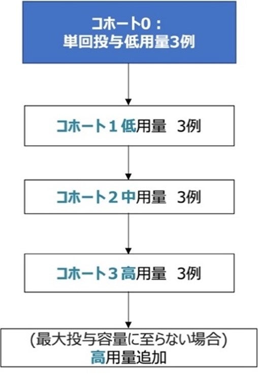 2024年11月14日付けで、「子宮頸がんに対するiPSC由来CTL療法 医師主導治験第I相臨床試験」の治験届が受理され、2025年1月より順天堂大学医学部附属順天堂医院 産婦人科において医師主導治験を開始します。本治験は、HPV16型陽性子宮頸がん患者で再発後に既存の治療による効果が見込めない患者を対象とし、本剤(rejT-H01)の安全性を非盲検非対照試験で検討します。スケジュールは、本品投与の2日前までシクロホスファミド水和物500 mg/m2及びフルダラビンリン酸エステル30 mg/m2によるリンパ球除去療法を1日1回3日間点滴静注する。リンパ球除去療法の翌々日を0日目としrejT-H01を投与します。コホート0は単回投与とし、Day21までの安全性を確認後、コホート1〜3の反復投与に移行します。反復投与ではrejT-H01を3週間に1回の間隔で投与します(図2)。