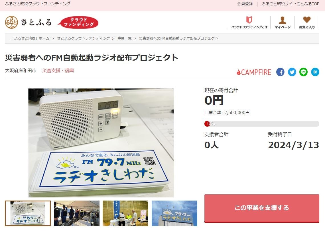 大阪府岸和田市とさとふる、避難行動要支援者へ防災ラジオを配布するため、寄付受け付けを開始