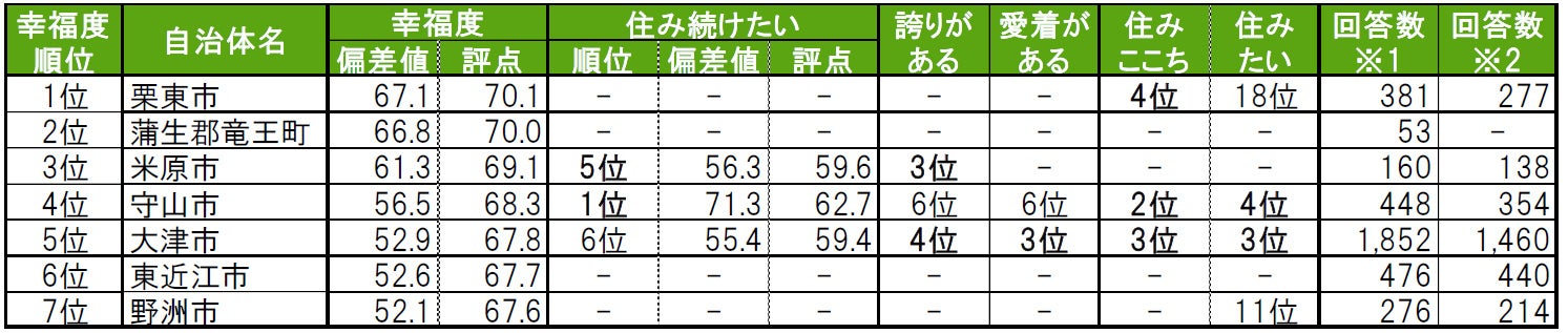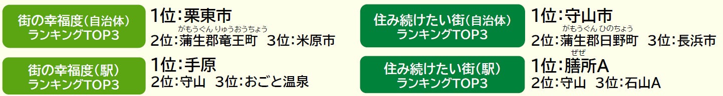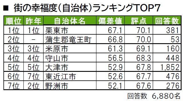 いい部屋ネット「街の幸福度 & 住み続けたい街ランキング2022<滋賀県版>」(街の住みここちランキング特別集計)発表
